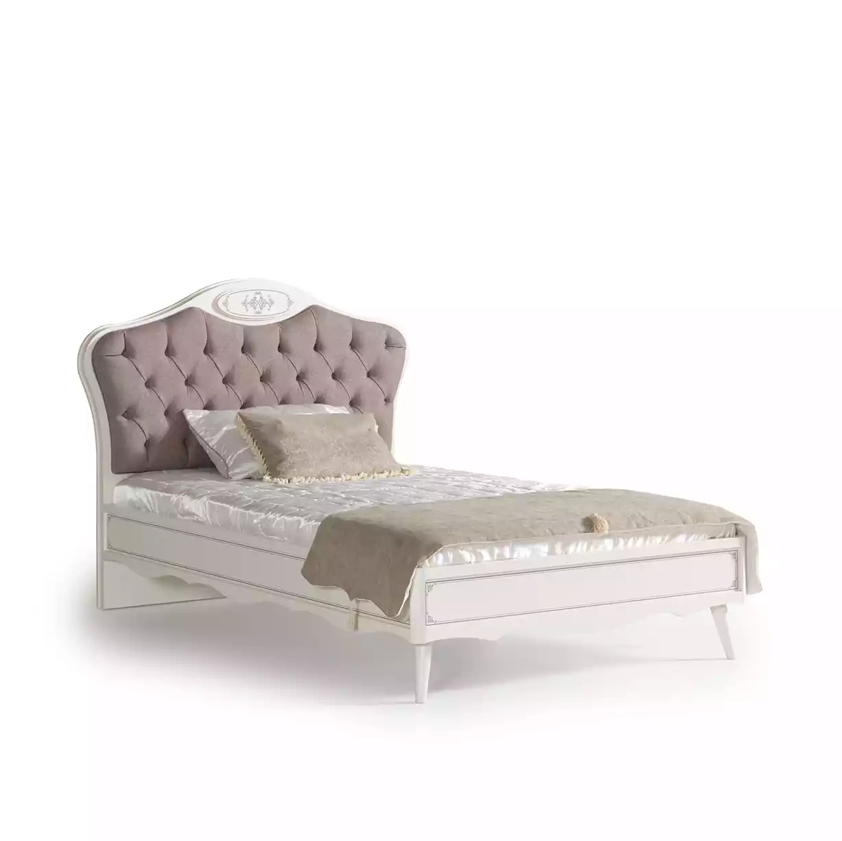 Chesterfield Jugendbett Bett 120 cm Kinderzimmer Set 5tlg Grau Stoff | xlmoebel.de