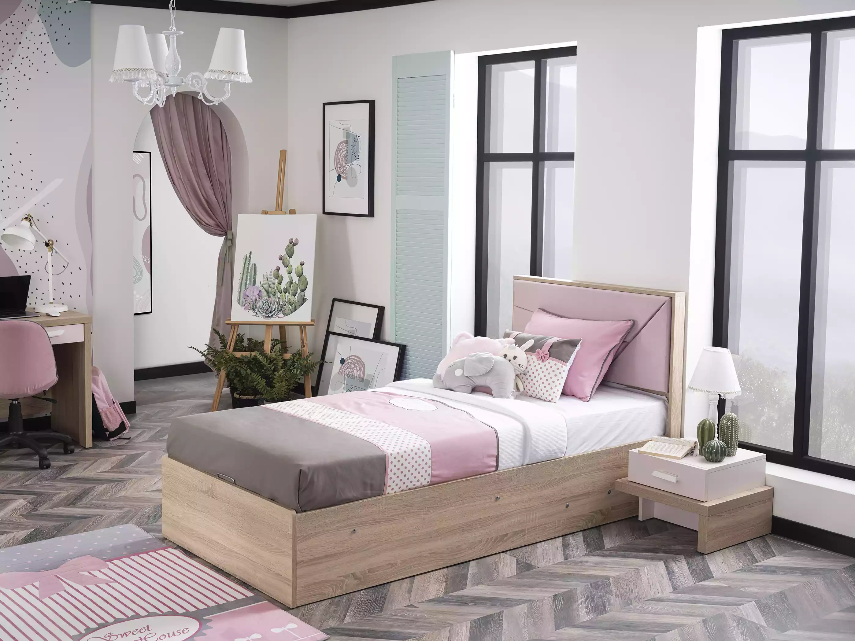 Das Kinderbett aus hochwertigem Holz in sanftem Rosa verkörpert stilvolle Eleganz und durchdachtes Design. Mit seinem modernen Bettrahmen fügt es sich harmonisch in jedes Kinderzimmer ein und schafft eine behagliche Atmosphäre. Der integrierte Bettkasten bietet praktischen Stauraum und hält das Zimmer stets aufgeräumt. Dieses exquisite Möbelstück ist nicht nur ein Schlafplatz, sondern ein Ausdruck eines anspruchsvollen Lebensstils, der das Wohlbefinden Ihres Kindes in den Mittelpunkt stellt. Die sorgfältige Verarbeitung und die Verwendung erstklassiger Materialien garantieren Langlebigkeit und Sicherheit. Wählen Sie dieses Kinderbett, um Ihrem Zuhause eine Note von Luxus zu verleihen und unvergessliche Kindheitserinnerungen zu schaffen.