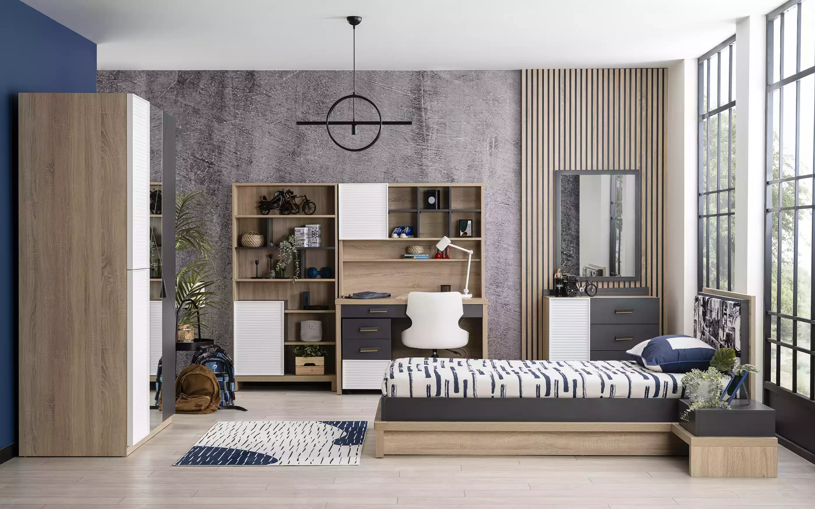 Kindermöbel Garnitur Kinderbett Kinderzimmer Bett Holz Grau Set 10tlg | xlmoebel.de
