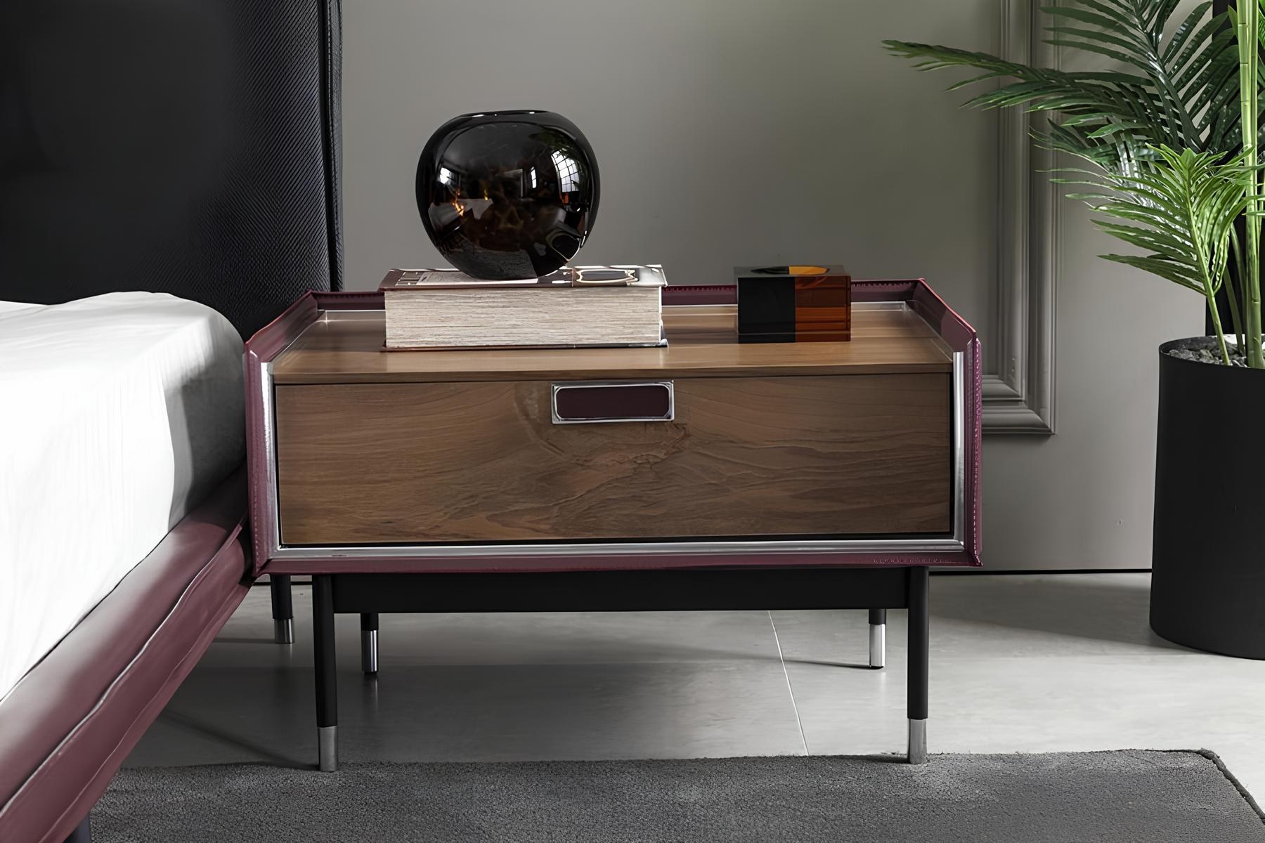 Entdecken Sie das exquisite 4-teilige Set aus Glas-Kleiderschrank, Schlafzimmerbett und Nachttischen, das die Essenz einer eleganten Wohnkultur verkörpert. Jedes Element in edlem Braun harmoniert perfekt miteinander und schafft eine luxuriöse Atmosphäre in Ihrem Schlafzimmer. Der großzügige Kleiderschrank bietet nicht nur ausreichend Stauraum, sondern besticht auch durch seine stilvolle Glasfront, die den Raum optisch vergrößert und Licht reflektiert. Das zeitlose Schlafzimmerbett fügt sich nahtlos in dieses Ensemble ein und garantiert höchsten Komfort. Die feinen Nachttische, ideal platziert für Ihre persönlichen Gegenstände, runden das Gesamtbild ab. Dieses Set ist die ideale Wahl für anspruchsvolle Käufer, die ein exklusives Lebensgefühl schätzen und sich nur mit dem Besten zufrieden geben.