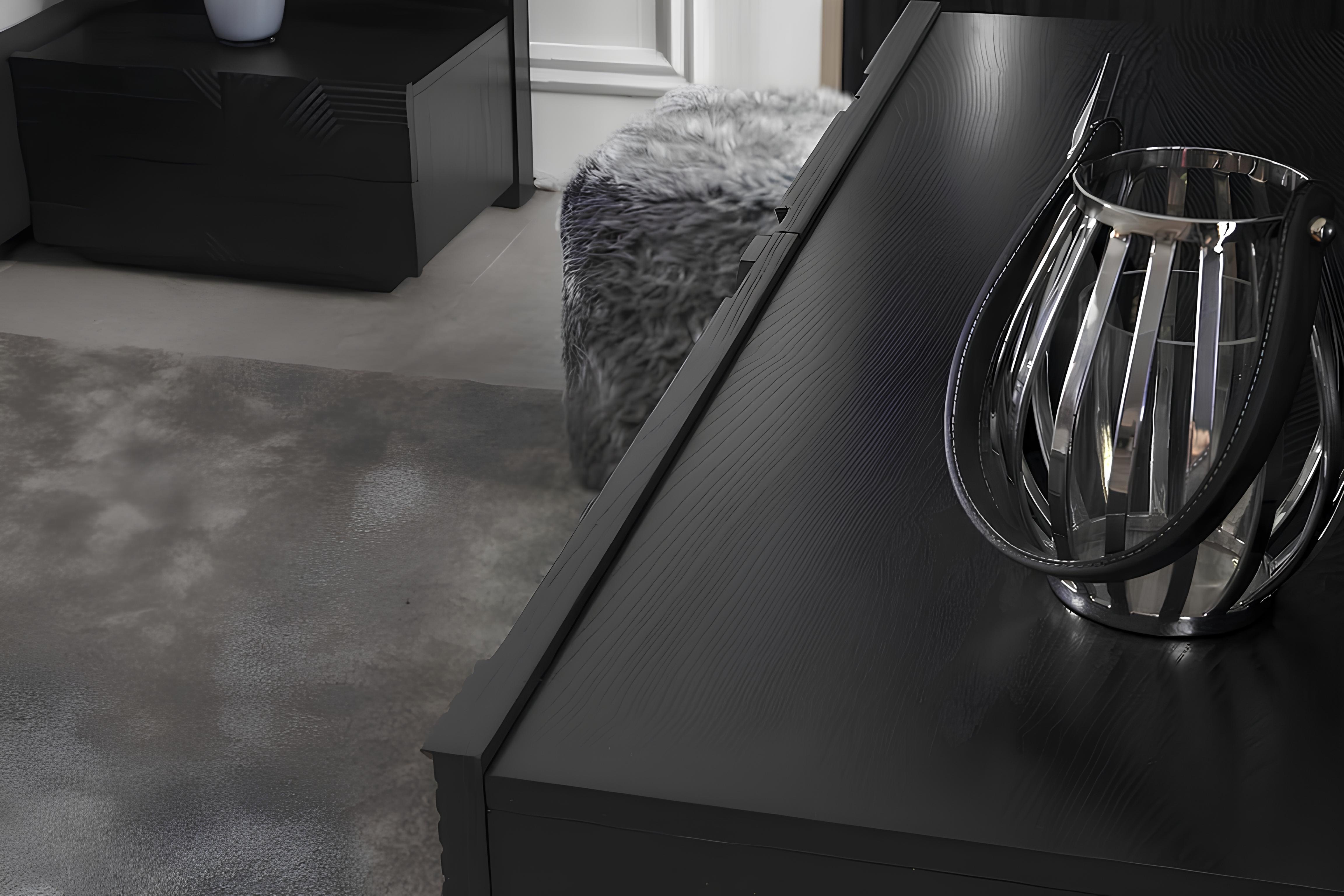 Die exklusive Schlafzimmer Garnitur 4tlg. in elegantem Schwarz vereint zeitlose Ästhetik mit durchdachter Funktionalität. Hergestellt aus hochwertigem Polyester, strahlt sie nicht nur Luxus aus, sondern bietet auch praktischen Stauraum, der Ihre persönlichen Gegenstände stilvoll verbirgt. Jedes Element dieser Garnitur ist sorgfältig verarbeitet und zeugt von über 20 Jahren Erfahrung in der Schaffung erlesener Möbel. Die harmonische Farbgebung fügt sich nahtlos in jede anspruchsvolle Einrichtung ein und unterstreicht den Charakter eines exklusiven Lebensstils. Wählen Sie diese Garnitur, um Ihrem Schlafzimmer eine Atmosphäre von Raffinesse und Eleganz zu verleihen, die sowohl Komfort als auch Stil vereint.