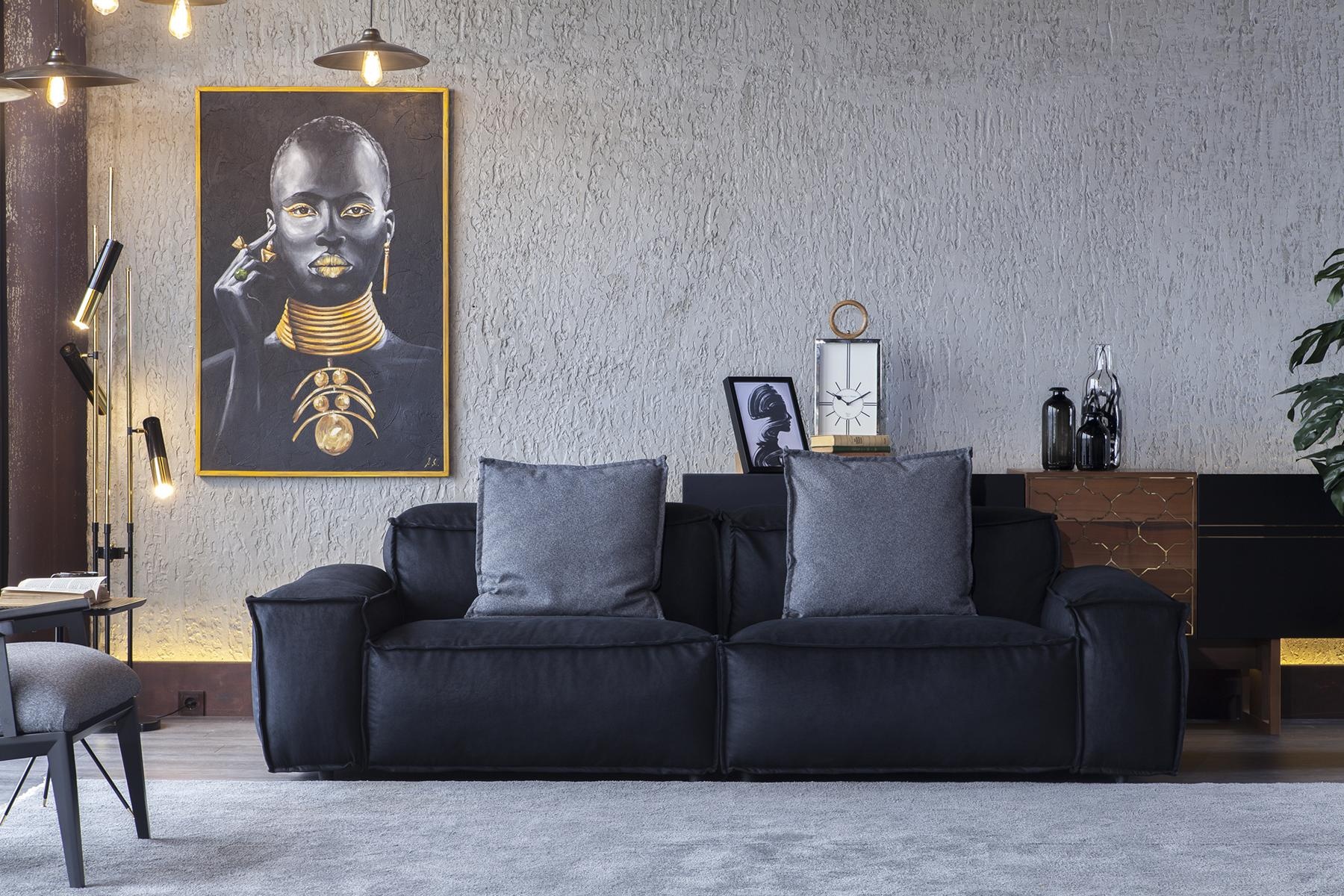 Die gemütliche Dreisitzer Couch vereint zeitlose Eleganz mit modernem Komfort und ist das Herzstück jedes stilvollen Wohnzimmers. Gefertigt aus hochwertigem, schwarzem Polyester, strahlt sie nicht nur Exklusivität aus, sondern überzeugt auch durch ihre Langlebigkeit und Pflegeleichtigkeit. Die großzügigen Polsterungen laden zum Verweilen ein und bieten erstklassigen Sitzkomfort für unvergessliche Momente des Entspannens. Mit ihrem klaren, minimalistischen Design fügt sich das Sofa harmonisch in jede Innenarchitektur ein und setzt zugleich stilvolle Akzente. Diese Couch ist die perfekte Wahl für alle, die ein Ambiente der Raffinesse und des guten Geschmacks schätzen. Erleben Sie eine neue Dimension des Wohnens mit diesem herausragenden Möbelstück.