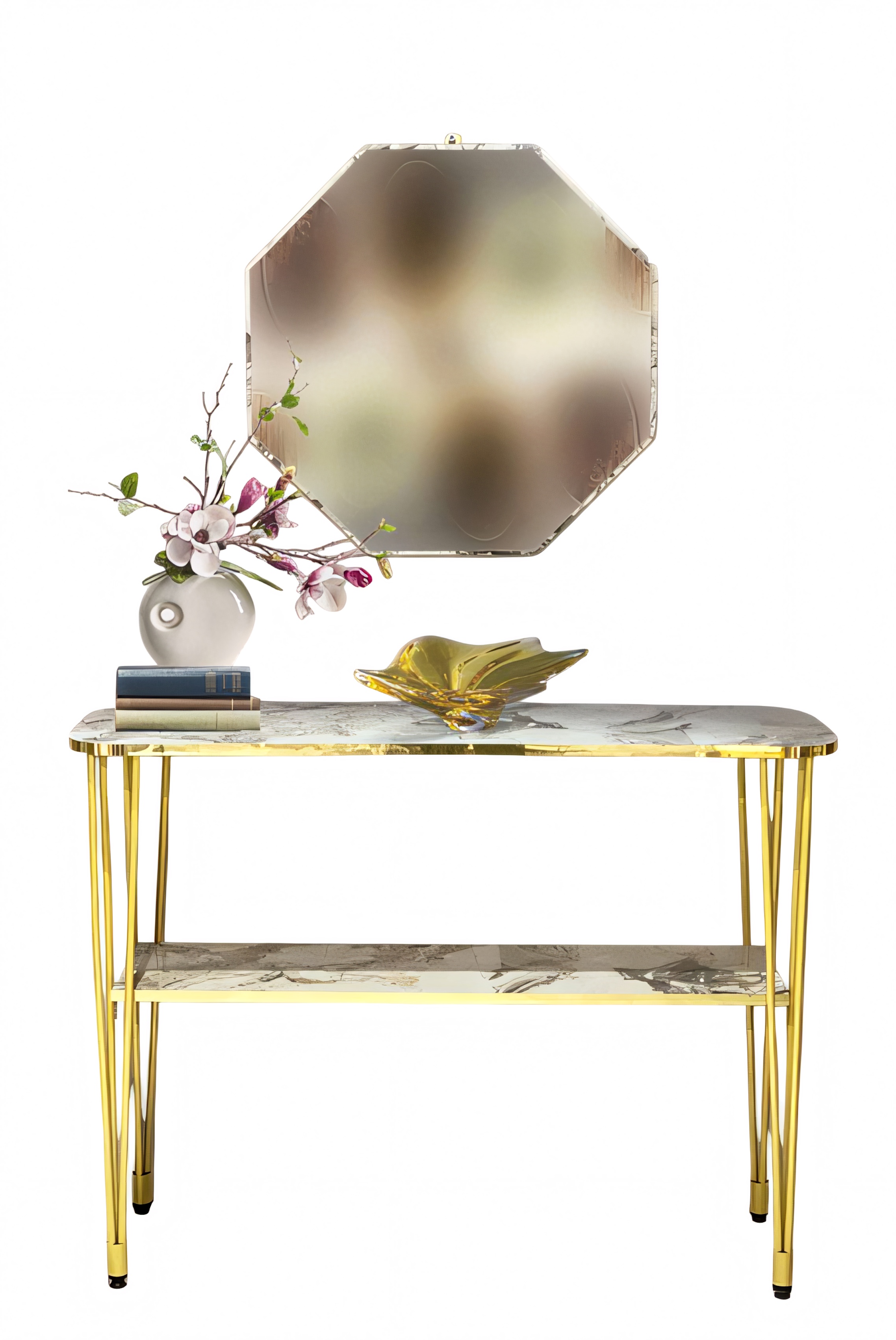Konsolentisch mit Spiegel aus Edelstahl und Glas in Weiß elegant