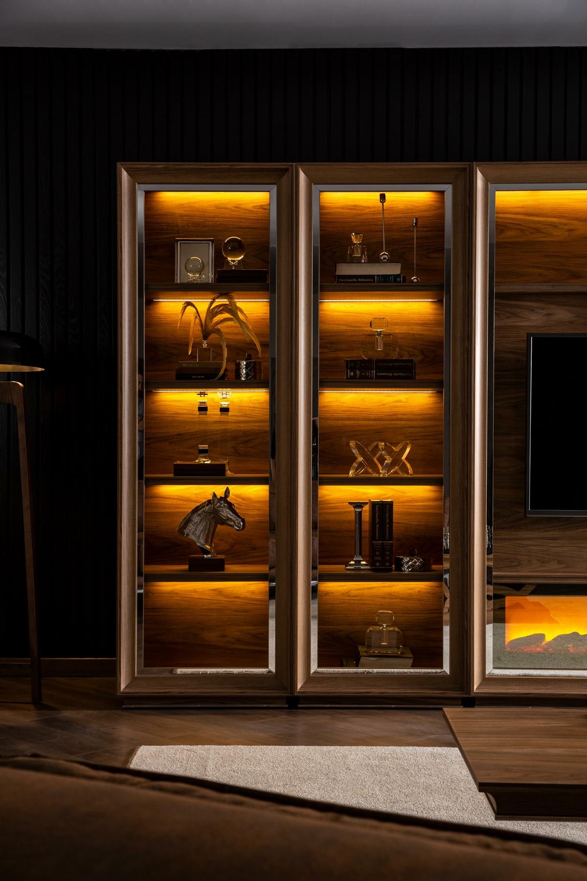 Die Luxus Wohnwand Anbei vereint zeitlose Eleganz mit modernem Design und wird zum zentralen Element Ihres Wohnraums. In einem warmen Braunton gefertigt, strahlt sie eine behagliche Exklusivität aus, während die integrierte Kaminfunktion für eine einladende Atmosphäre sorgt. Diese durchdachte Schrankwand bietet nicht nur großzügigen Stauraum, sondern verwandelt Ihr Zuhause in eine Oase des Stils und der Raffinesse. Der Couchtisch, harmonisch in das Gesamtkonzept integriert, rundet das Ensemble perfekt ab. Seit 20 Jahren steht unsere Marke für hochwertige Möbel, die ein unvergleichliches Wohnambiente schaffen. Wählen Sie die Luxus Wohnwand Anbei und genießen Sie das Leben in vollendeter Exklusivität.
