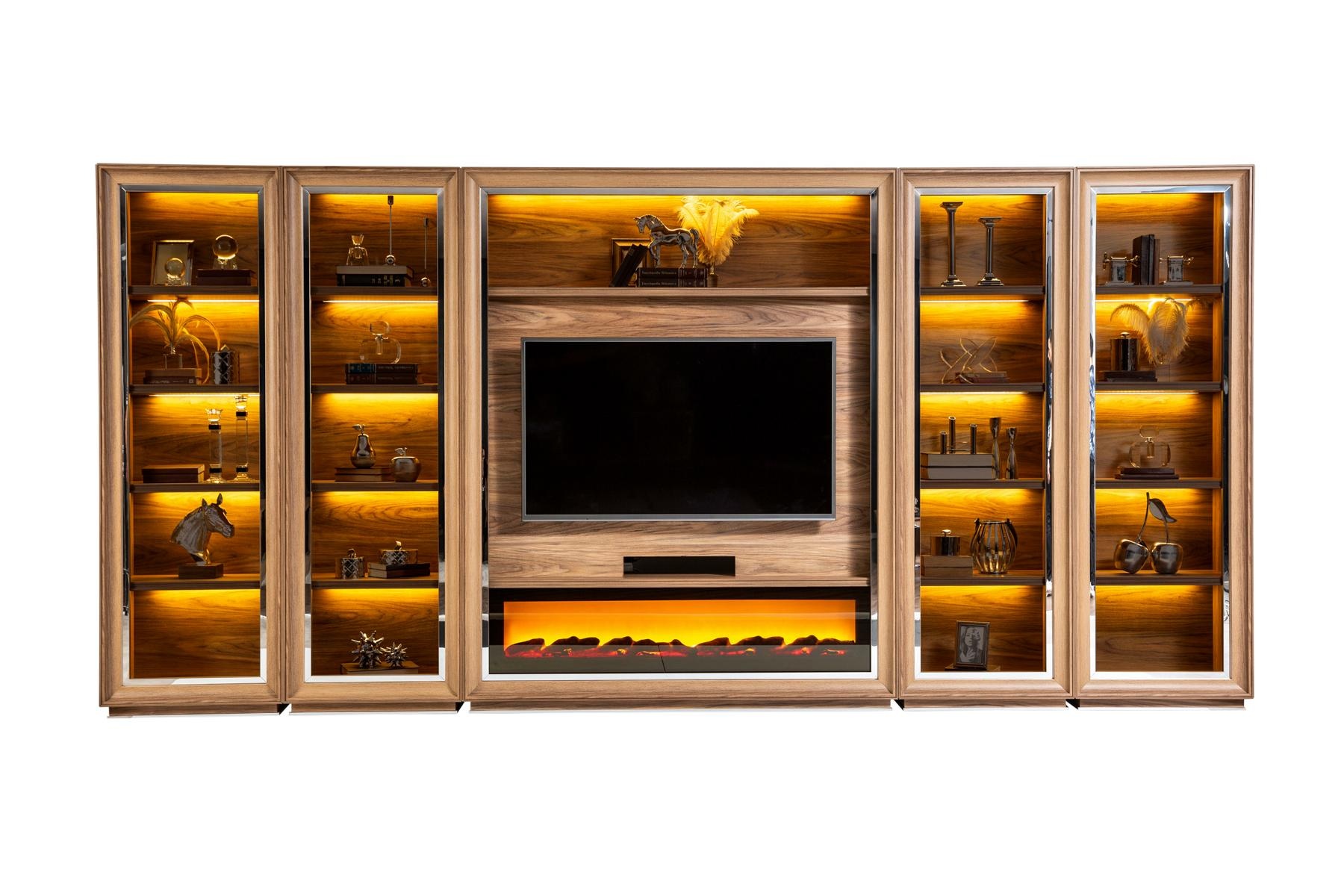 Luxus Wohnwand Anbei Wand Schrankwand Wohnwände mit Kamin Couchtisch | xlmoebel.de