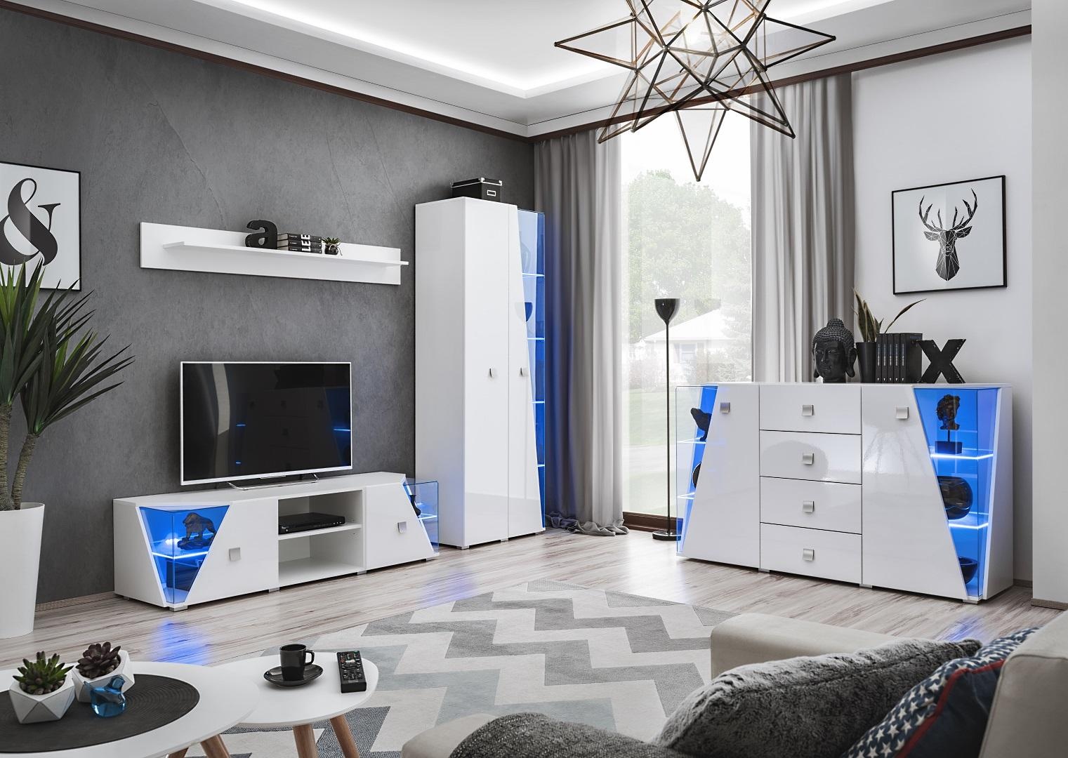 Wohnwand Modern Weiß TV-Ständer Wohnzimmer Vitrine Garnitur 4 tlg.Neu | xlmoebel.de