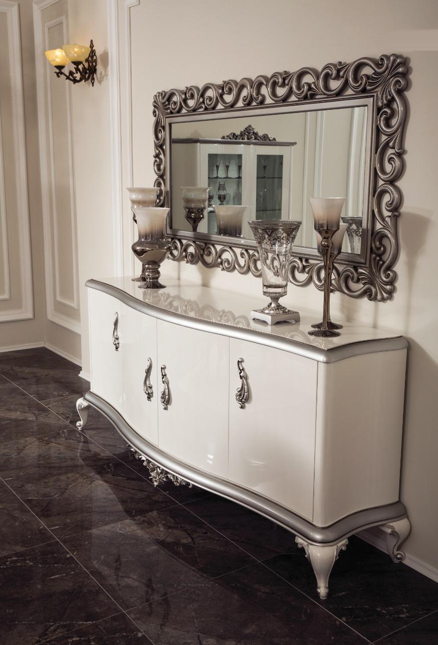 Entdecken Sie die zeitlose Eleganz der französischen Kommode Anrichte Kommoden Konsole Sideboard Holz Spiegel von XL Moebel! Hergestellt aus hochwertigem Holz und in einem edlen Design präsentiert sich dieses Set in den Maßen ca. 210 x 53 x 87 cm für das Sideboard und ca. 108 x 5 x 88 cm für den Spiegel. Die klassische Farbe und das filigrane Material verleihen jedem Raum eine stilvolle Note. Verleihen Sie Ihrem Zuhause einen Hauch von Luxus mit diesem einzigartigen Möbelstück!