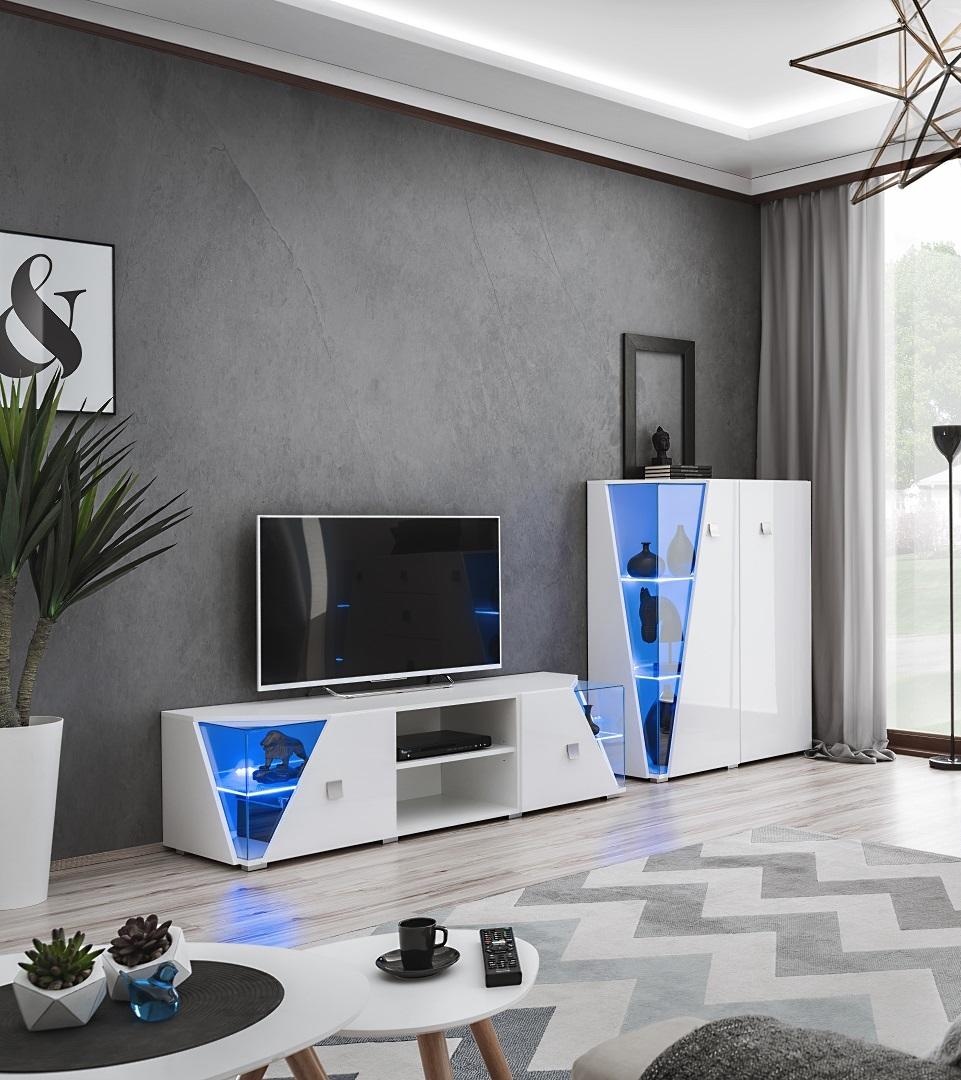 TV-Ständer Wohnwand Wohnzimmer Modern Möbel Lowboard Weiß Vitrine | xlmoebel.de