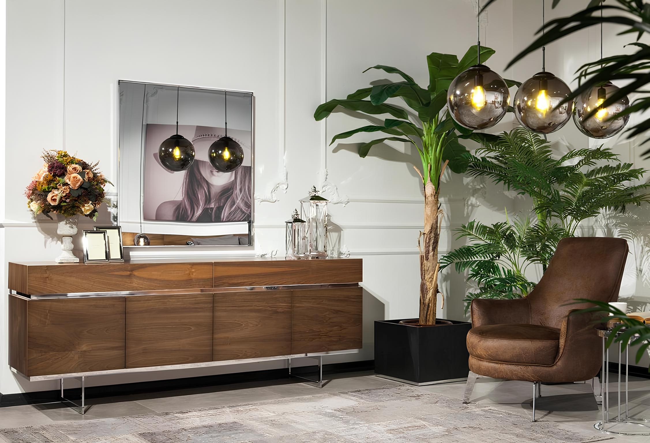 Der Schlafzimmer Esstisch mit vier exquisiten Lehnstühlen, einer eleganten Anrichte und einem stilvollen Spiegel verkörpert zeitlose Raffinesse. In einem warmen Braunton aus hochwertigem Polyester gefertigt, fügt sich dieses Ensemble harmonisch in jede exklusive Wohnlandschaft ein. Der Tisch bietet großzügigen Platz für gesellige Abende und festliche Anlässe, während die Lehnstühle ultimativen Komfort und Stil vereinen. Die Anrichte, mit ihrem klaren Design, bietet nicht nur praktischen Stauraum, sondern setzt auch einen ästhetischen Akzent. Dieser Möbelklassiker ist mehr als nur ein Einrichtungselement; er spiegelt einen Lebensstil wider, der Eleganz und Qualität in den Mittelpunkt stellt. Gönnen Sie sich dieses Meisterwerk und verwandeln Sie Ihr Zuhause in ein Refugium des Luxus.