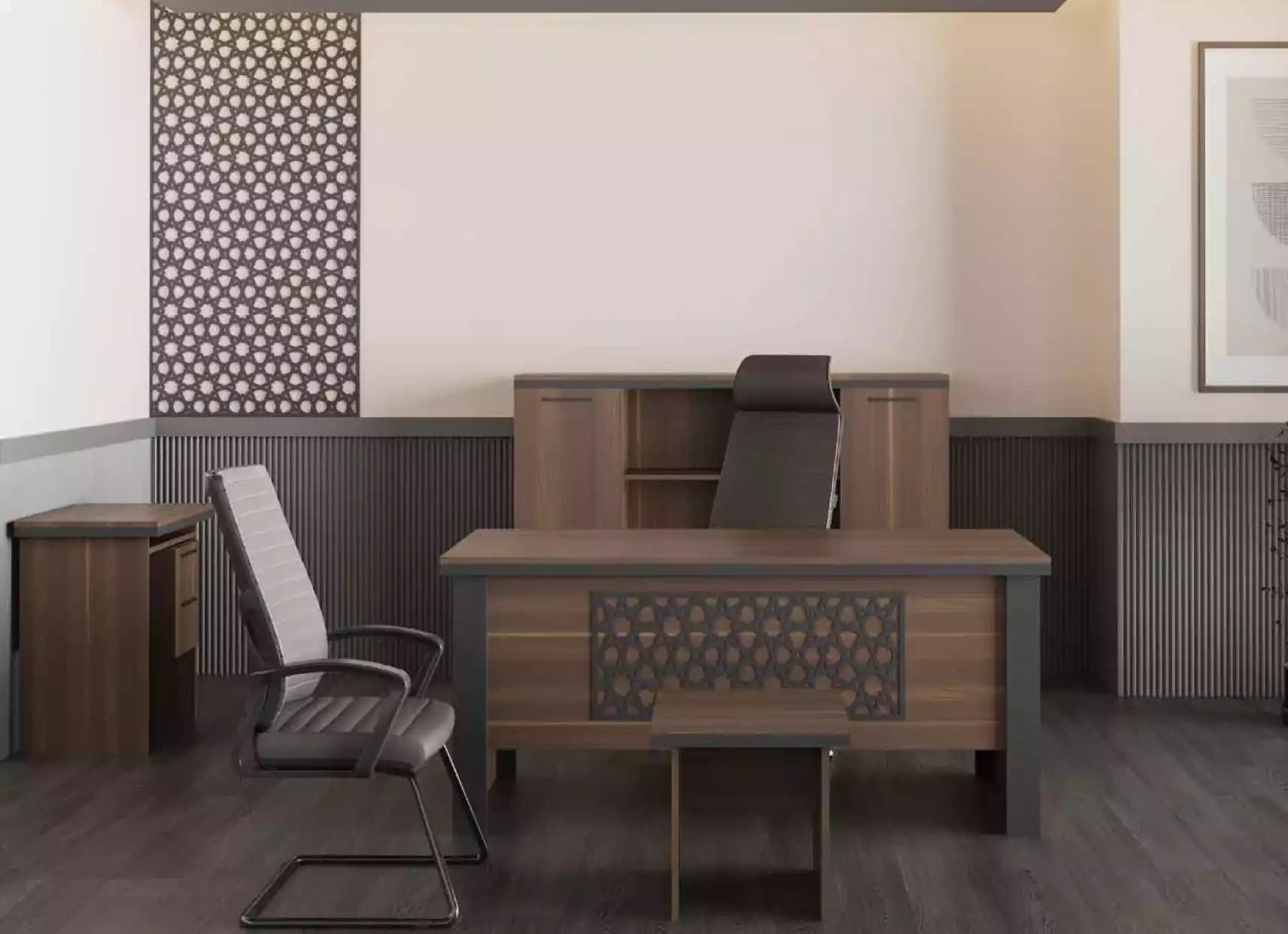Das 4-teilige Arbeitszimmermöbel-Set vereint zeitlose Eleganz mit modernem Design. Das Bücherregal, der Schrank, die Schreibtische und die Kommoden sind aus hochwertigem, braunem Material gefertigt und schaffen eine harmonische Atmosphäre in Ihrem Arbeitsbereich. Jedes Stück besticht durch seine klare Linienführung und durchdachte Funktionalität, die den Ansprüchen eines anspruchsvollen Lebensstils gerecht werden. Die exquisite Verarbeitung und die feinen Details reflektieren die 20-jährige Tradition unserer Marke in der Herstellung von Luxusmöbeln. Dieses Set ist nicht nur ein Ausdruck von Stil, sondern auch ein Zeichen für Exklusivität und Qualität, das Ihrem Zuhause einen Hauch von Raffinesse verleiht. Wählen Sie dieses Möbelstück, um Ihr Arbeitszimmer in eine Oase der Inspiration zu verwandeln.