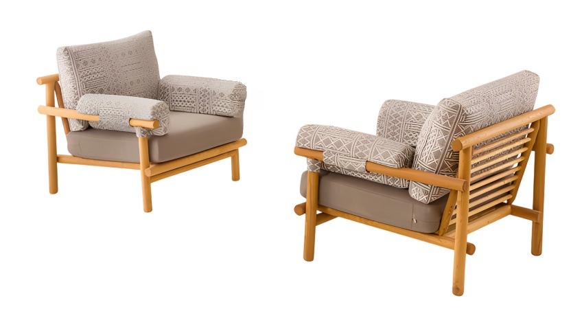 2er Set moderne Beigefarbene Stoffsessel aus Holz für Außenbereiche | xlmoebel.de
