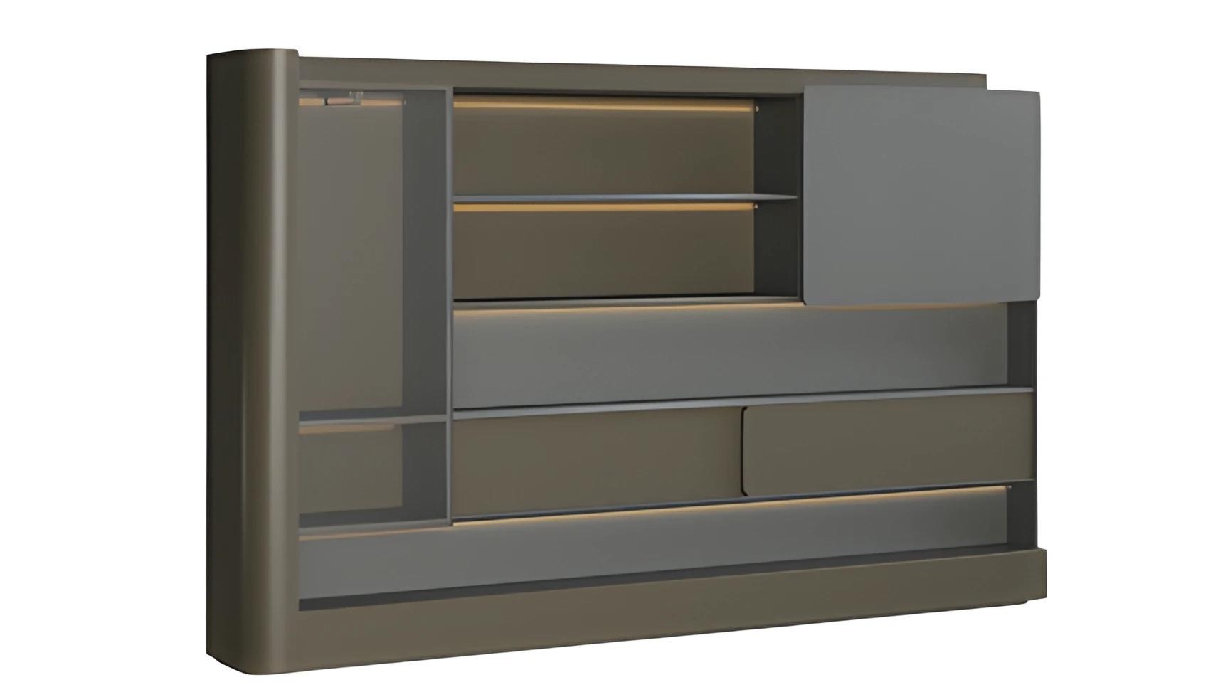 Büroschrank Regalwand Modern Schwarz Grau LED Beleuchtung Aktenschrank Stauraum | xlmoebel.de