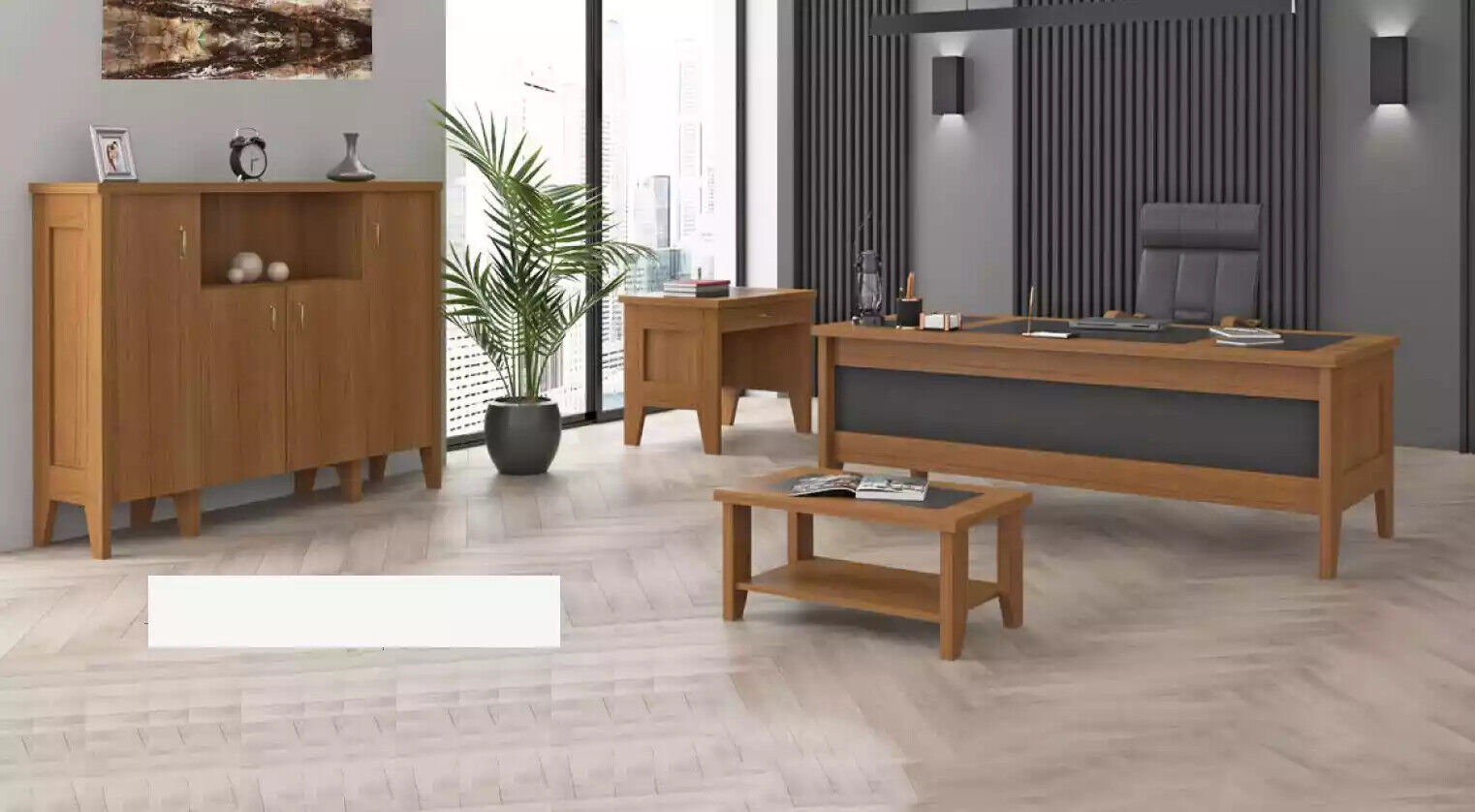 Richten Sie Ihr Büro stilvoll und praktisch ein mit diesem 4-teiligen Set von XL Moebel! Enthalten sind ein geräumiger Schreibtisch (ca. 200 x 90 x 75 cm), ein gemütlicher Couchtisch (ca. 80 x 50 x 45 cm), ein praktischer Beistelltisch (ca. 90 x 60 x 75 cm) und ein großer Schrank (ca. 170 x 40 x 131 cm) - alles aus hochwertigem Holz gefertigt. Die perfekte Wahl für Ihr Büro! Farbe: wie abgebildet. Ideal für ein modernes Arbeitsumfeld. Machen Sie Ihren Arbeitsplatz zu einem Ort, an dem Effizienz auf Komfort trifft! Maße: Schreibtisch: ca. 200 x 90 x 75 cm, Couchtisch: ca. 80 x 50 x 45 cm, Beistelltisch: ca. 90 x 60 x 75 cm, Schrank: ca. 170 x 40 x 131 cm.
