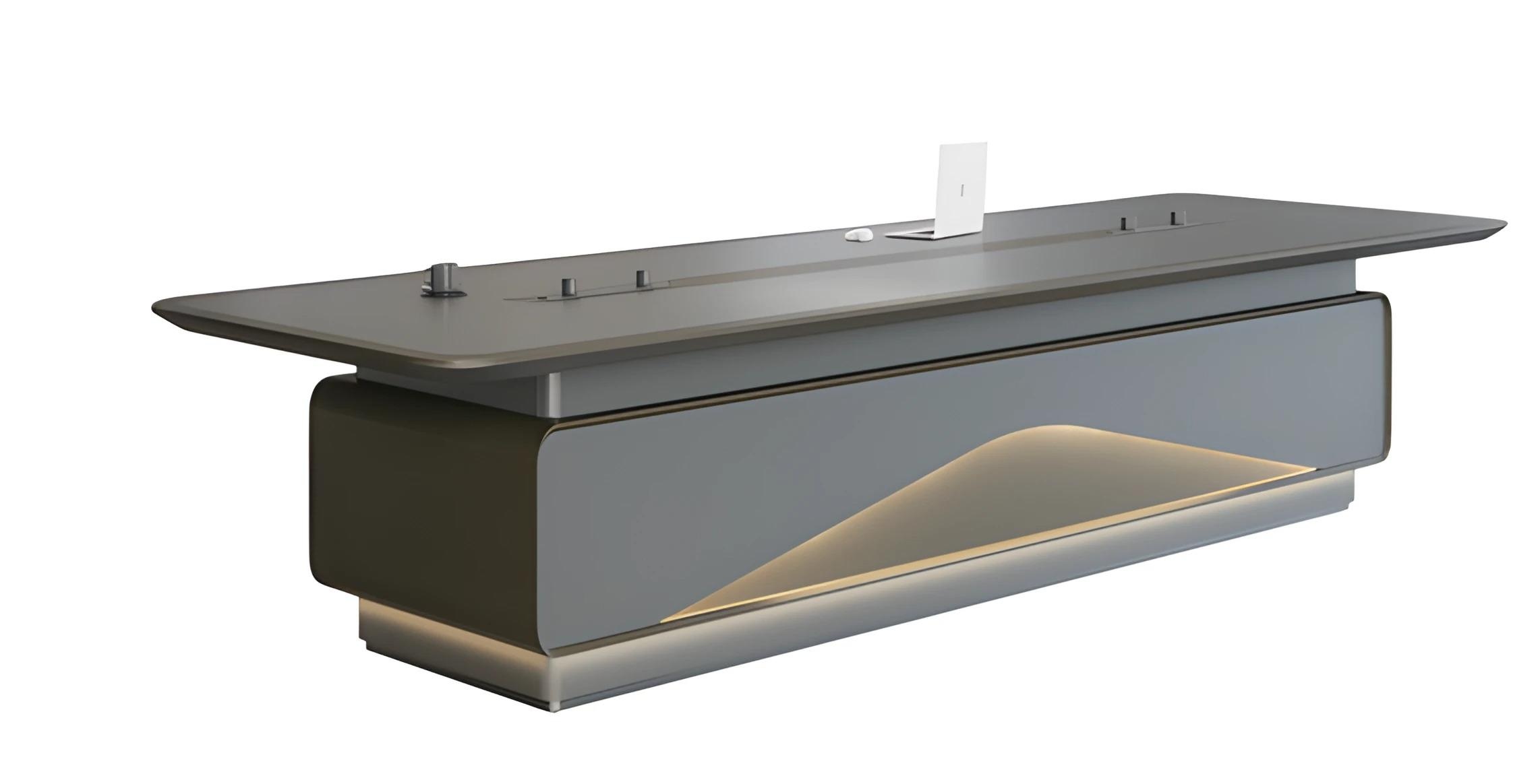 Konferenztisch Besprechungstisch Luxus Grau LED Beleuchtung Kabelmanagement