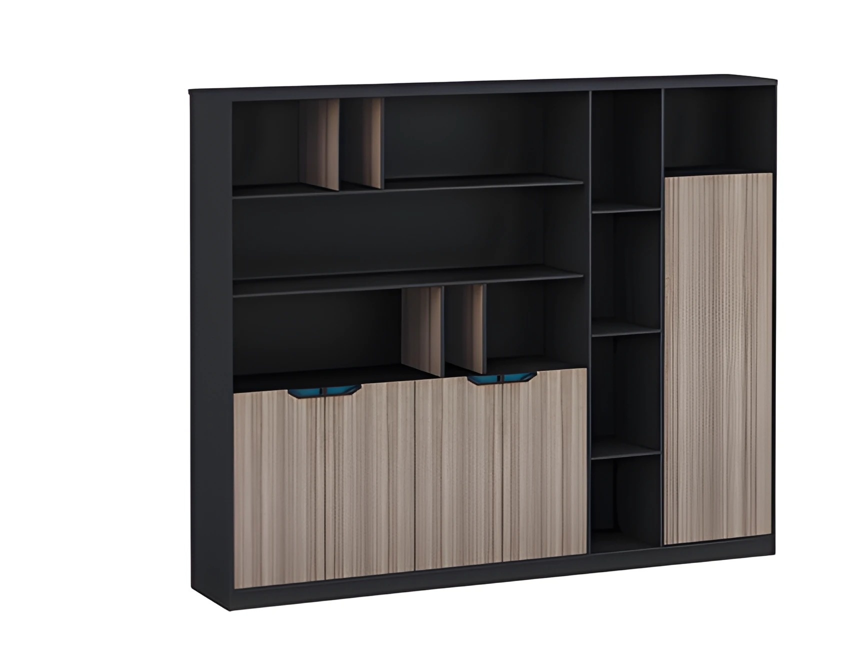 Büroschrank Regalwand Holzoptik Braun Schwarz Türen Fächer Ordner Modern Blau