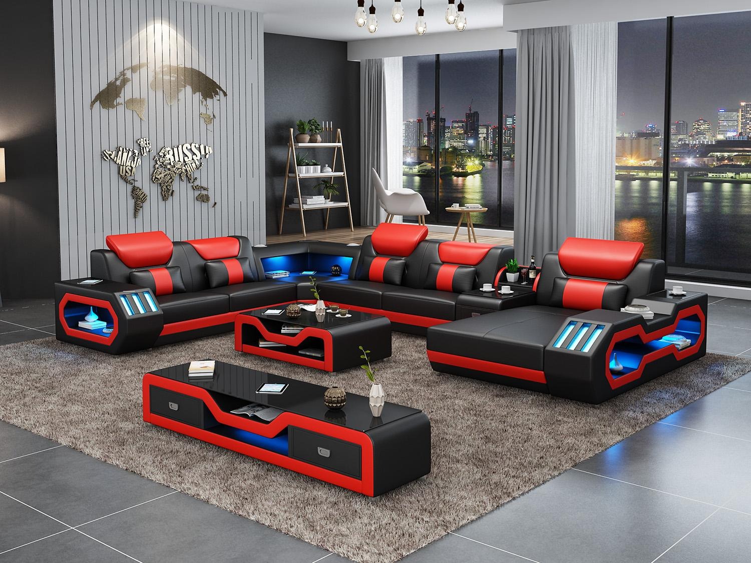 Kaufen Sie ein Ecksofa in U-Form, günstig, mit Lederpolsterung, Sofa für das Wohnzimmer