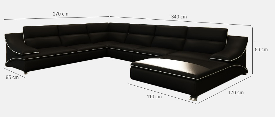 Erwerben Sie dieses luxuriöse U-förmige Ecksofa mit integrierter USB-Klickautomatik für ein modernes und komfortables Wohnambiente. Das Ecksofa aus Premium Lederfaserstoff in einer Auswahl von Farben bietet Ihnen die Möglichkeit, Ihr Wohnzimmer nach Ihrem Geschmack zu gestalten. Mit Maßen von ca. 176 x 340 x 270 cm oder 270 x 340 x 176 cm, einer Höhe von ca. 86 cm und einer bequemen Sitzhöhe von ca. 42 cm bietet diese Wohnlandschaft viel Platz zum Entspannen. Die optionalen Zusätze wie eine elektrische Relax-Fußstütze, ein Becherhalter mit Kühlsystem oder ein Soundsystem mit USB und Bluetooth sorgen für zusätzlichen Komfort und Funktionalität. Das Ecksofa verfügt über ein Innengestell aus echtem Holz und eine hochwertige Federkernpolsterung für lang anhaltende Stabilität und Bequemlichkeit. Die Varianten aus Premium Echtleder oder Vollleder sind gegen Aufpreis erhältlich und unterstreichen die edle Optik dieses exklusiven Ledersofas. Genießen Sie Entspannung und Luxus mit dieser eleganten Wohnlandschaft, die Ihr Zuhause in eine Wohlfühloase verwandelt. Wählen Sie Ihre Lieblingsfarbe aus einer Vielzahl von Optionen und machen Sie dieses Ecksofa mit USB zur neuen Hauptattraktion in Ihrem Wohnzimmer.