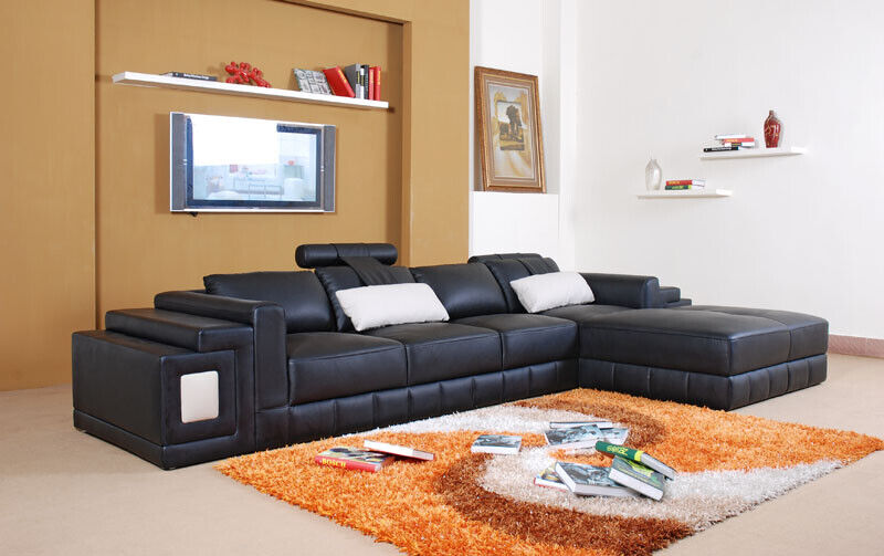 Ecksofa Leder Sofa Couch Polster Eck Wohnlandschaft Sitz Garnitur L-Form