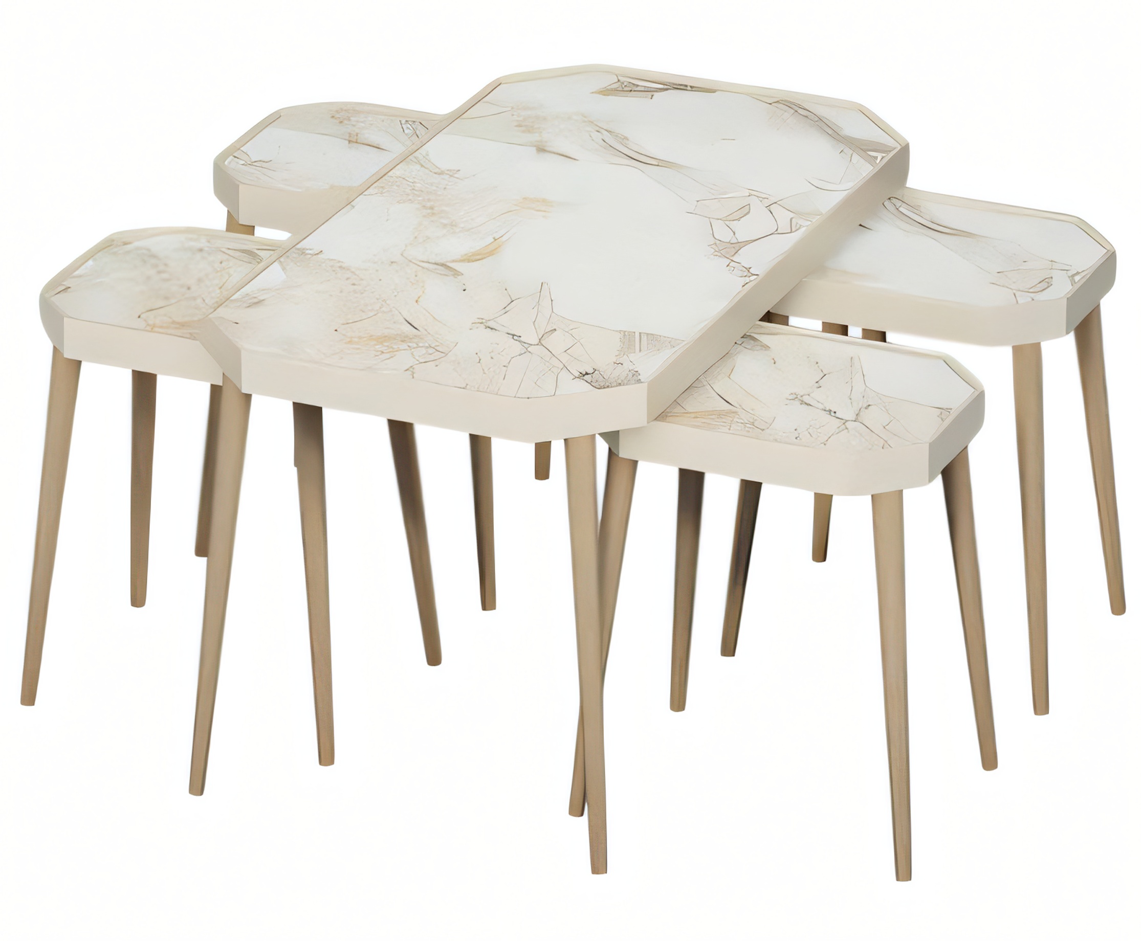 Beige Holz Couchtisch mit Beistelltischen im eleganten Stil | xlmoebel.de