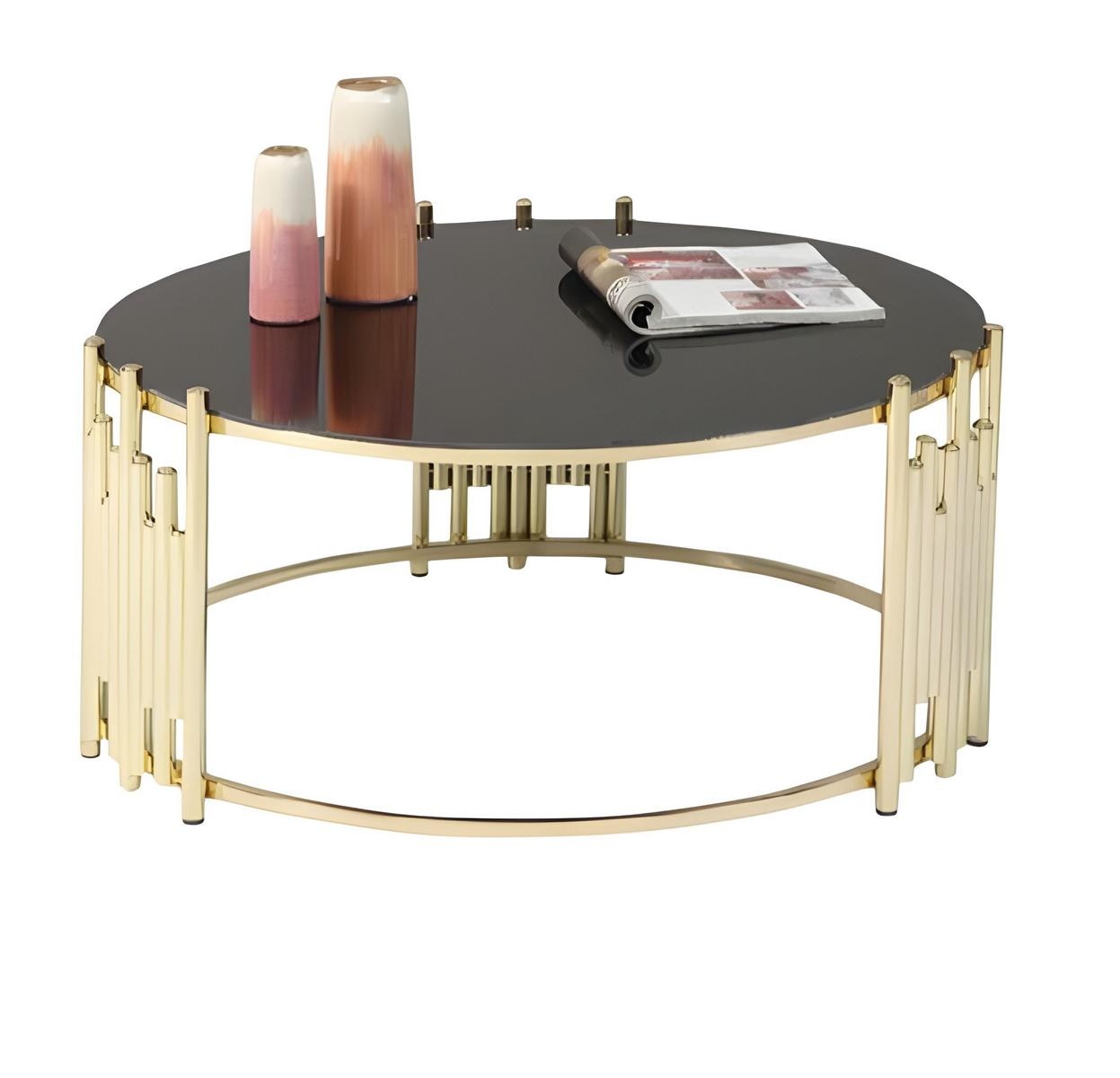 Das goldfarbene Metallgestell mit schwarzer Tischplatte verkörpert zeitlose Eleganz und außergewöhnliche Handwerkskunst. Die harmonische Verbindung von robustem Metall und edlem Schwarz schafft ein Statement, das sowohl Schönheit als auch Zuverlässigkeit verkörpert. Jedes Detail wurde mit höchster Präzision gestaltet, um eine luxuriöse Atmosphäre in Ihrem Zuhause zu schaffen. Dieses exklusive Möbelstück fügt sich nahtlos in verschiedene Einrichtungsstile ein und wird zum Mittelpunkt jeder Umgebung. Ideal für anspruchsvolle Individualisten, die Wert auf Qualität und Design legen. Setzen Sie mit diesem außergewöhnlichen Tisch einen Akzent, der Ihren Lebensstil auf unvergleichliche Weise widerspiegelt.