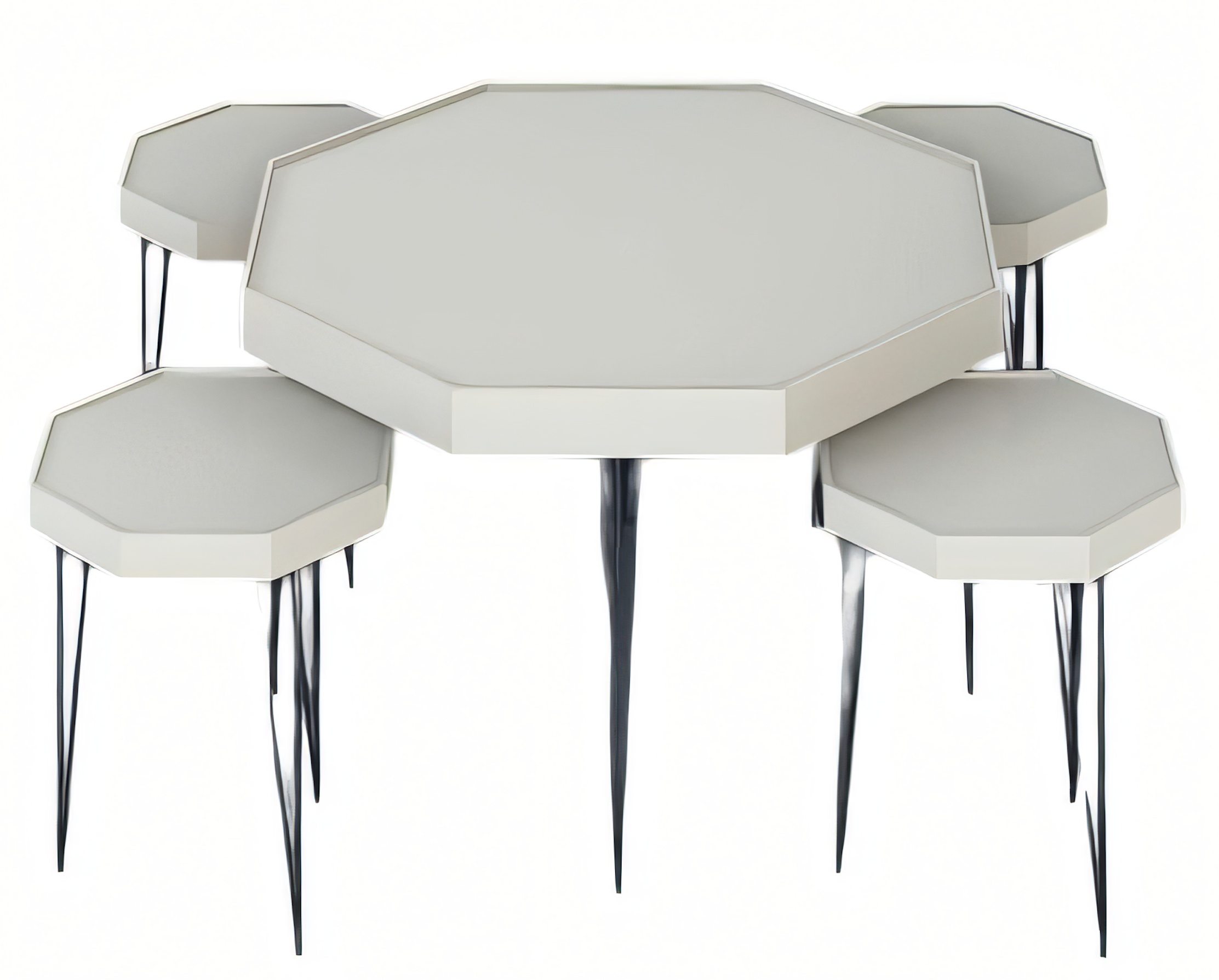 Eleganter weißer Holz-Couchtisch mit Beistelltischen im modernen Stil