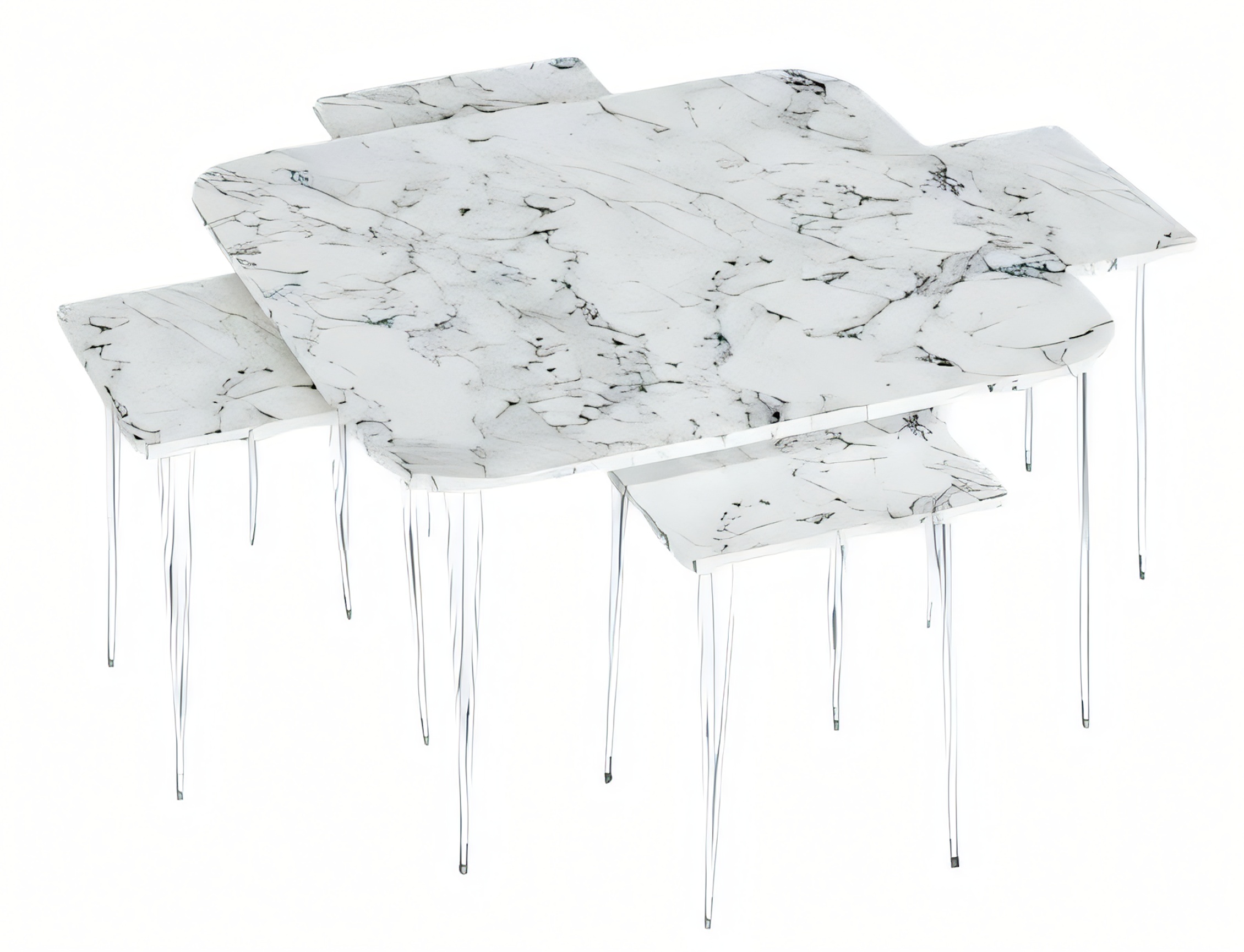 Eleganter weißer Holz-Couchtisch mit Beistelltischen im modernen Stil