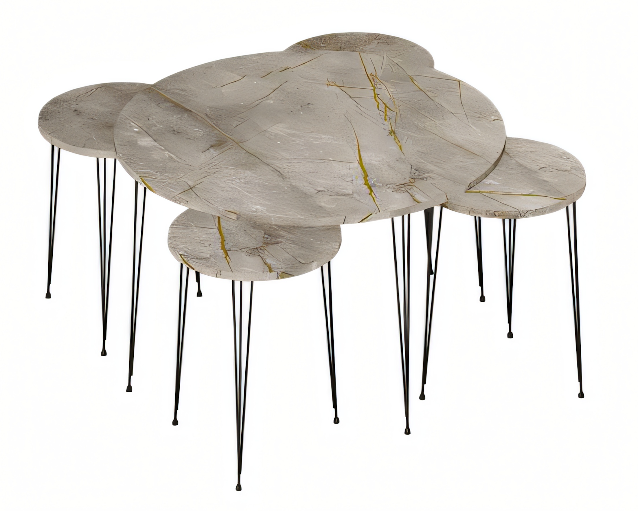 Der moderne graue Holz-Couchtisch mit Beistelltischen verkörpert zeitlose Eleganz und Funktionalität. Sein stilvolles Design, harmonisch in Grau gehalten, fügt sich nahtlos in jede luxuriöse Wohnlandschaft ein. Hergestellt aus erstklassigem Holz, vereint er Robustheit mit einer raffinierten Ästhetik, die das Ambiente Ihres Zuhauses veredelt. Die handwerkliche Verarbeitung und die klaren Linien schaffen eine Atmosphäre von Exklusivität, die den hohen Ansprüchen einer anspruchsvollen Klientel gerecht wird. Die praktischen Beistelltische erweitern die Funktionalität und bieten Platz für Ihre persönlichen Akzente. Dieser Couchtisch ist nicht nur ein Möbelstück, sondern ein Statement für einen erlesenen Lebensstil.