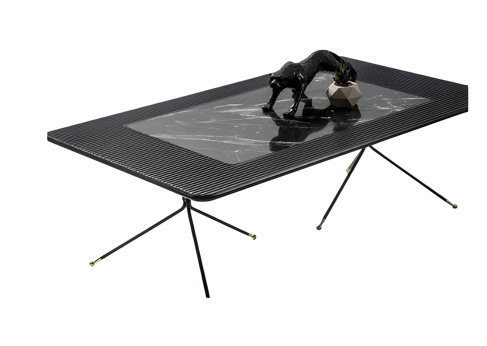 Der moderne Couchtisch mit eleganten Metallbeinen vereint zeitlose Ästhetik und funktionale Raffinesse. In seiner rechteckigen Form strahlt er eine unvergleichliche Präsenz aus, während die tiefschwarze Oberfläche luxuriöse Akzente setzt. Hergestellt aus erstklassigen Materialien, garantiert dieser Tisch nicht nur Stabilität, sondern auch eine mühelose Pflege. Seine klare Linienführung und das minimalistische Design fügen sich harmonisch in jede anspruchsvolle Wohnlandschaft ein und schaffen eine exklusive Atmosphäre. Ideal für all jene, die Wert auf Stil und Qualität legen, ist dieser Couchtisch das perfekte Statement für ein modernes Zuhause. Genießen Sie den Luxus, den nur zwei Jahrzehnte Erfahrung in der Herstellung hochwertiger Möbel bieten können.