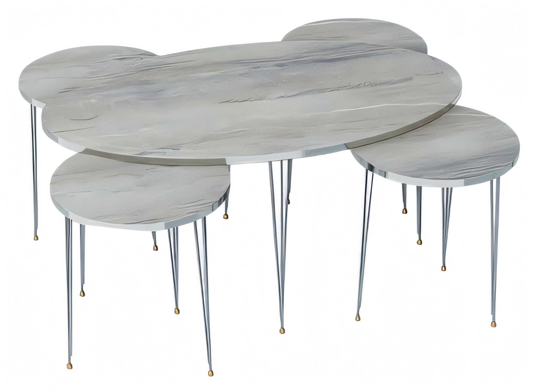 Moderner grauer Couchtisch mit 4 Beistelltischen aus Holz