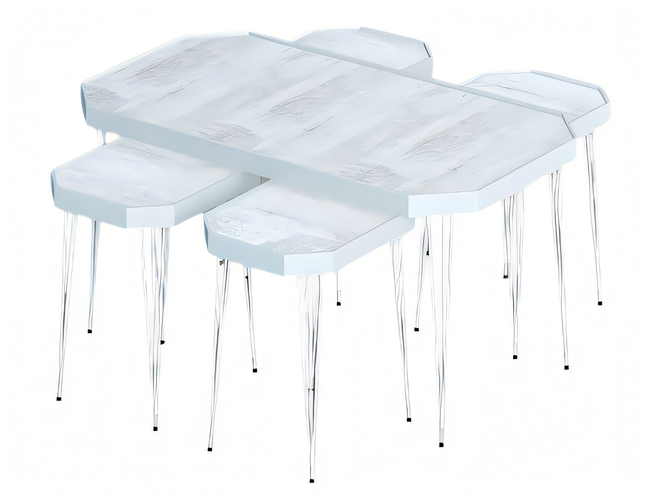 Eleganter Weißer Holz-Couchtisch mit Beistelltischen im modernen Stil
