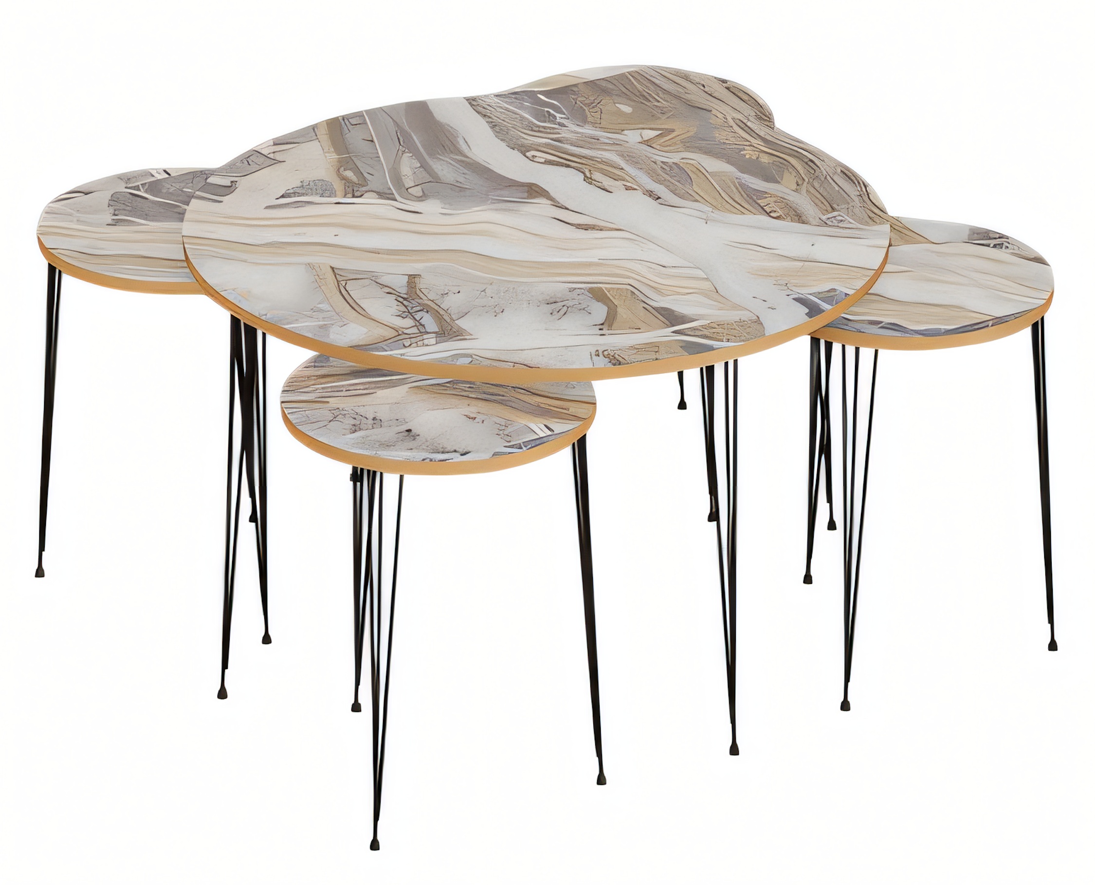 Mehrfarbiger Holz-Couchtisch mit Beistelltischen im modernen Stil