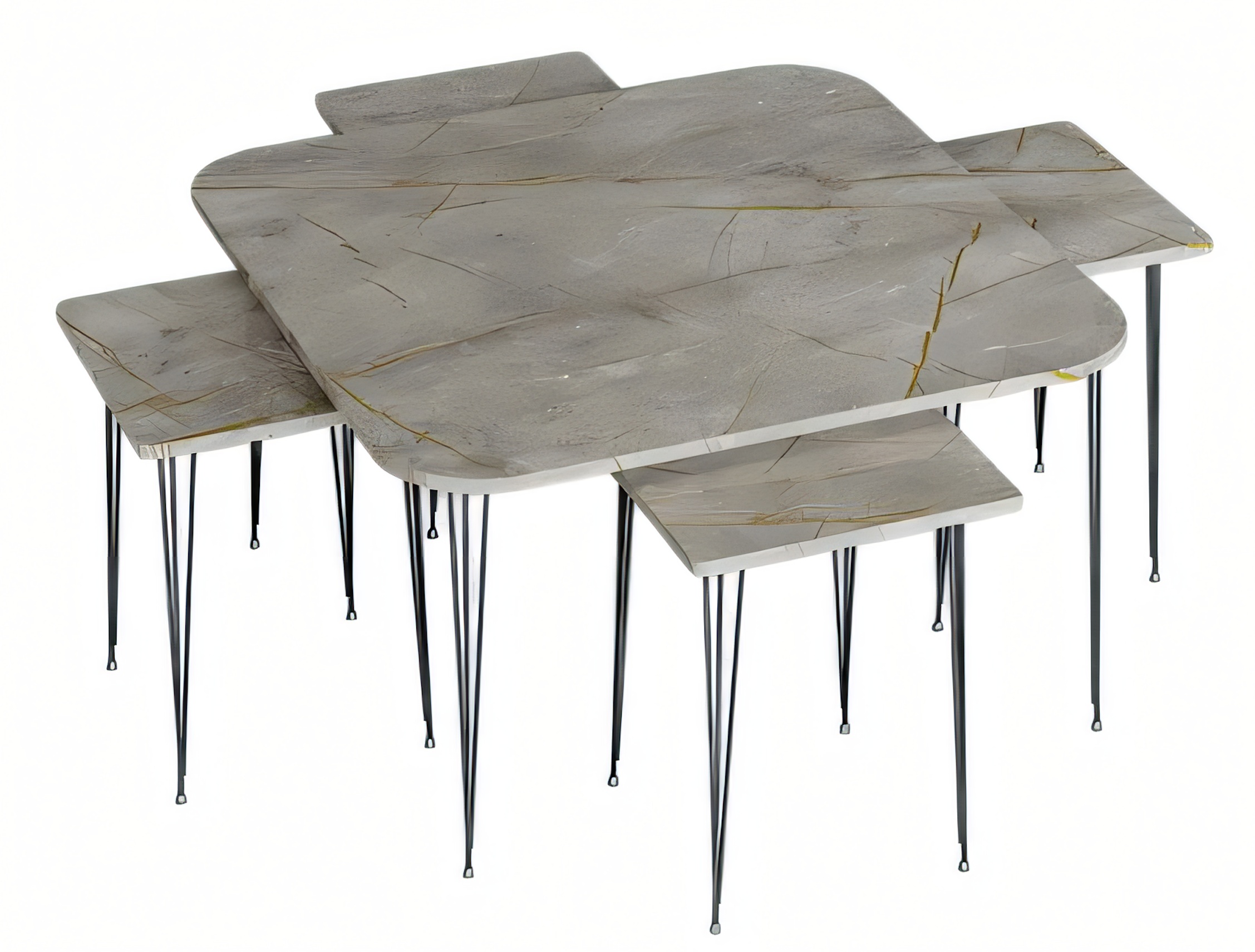 Moderner grauer Holz-Couchtisch mit Beistelltischen