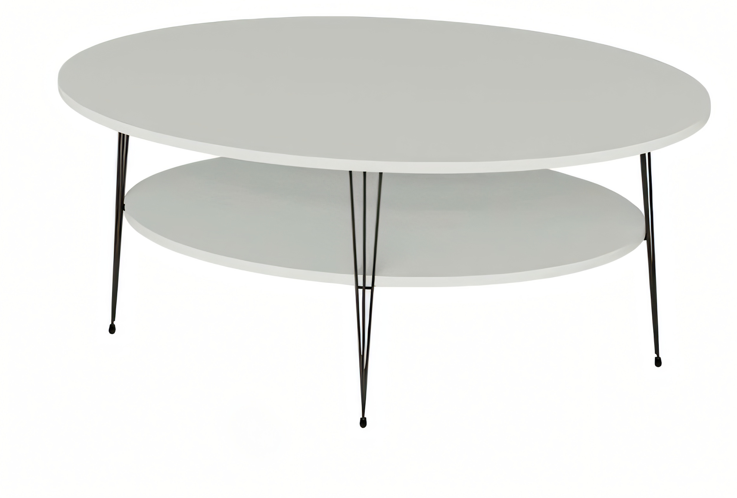Moderner weißer Couchtisch aus Holz mit Edelstahlrahmen