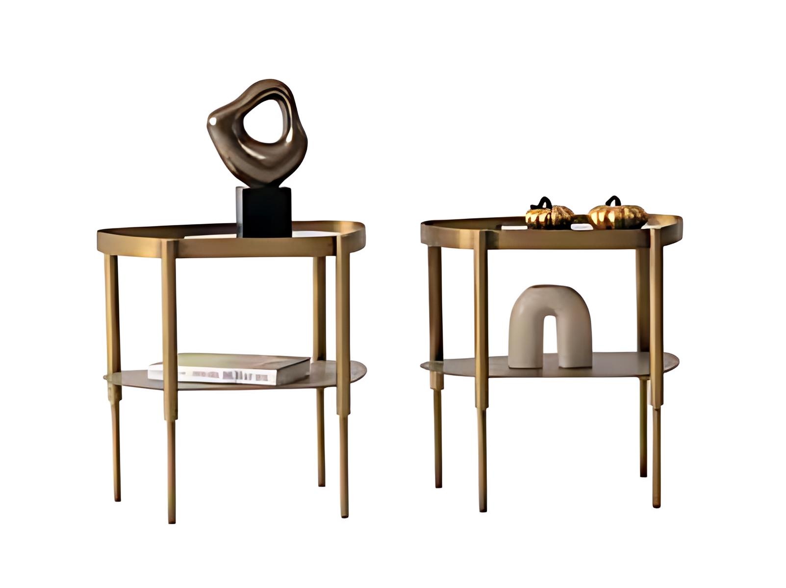 Der Beistelltisch-Duo aus Edelstahl verkörpert zeitlose Eleganz und moderne Raffinesse. Mit seiner exquisiten Oberfläche in edlem Gold schafft er einen luxuriösen Akzent in jedem Wohnraum. Die harmonische Form und die klaren Linien fügen sich nahtlos in ein anspruchsvolles Ambiente ein und bieten gleichzeitig praktische Funktionalität. Dieses Meisterwerk vereint Ästhetik und Qualität, und reflektiert den hohen Anspruch an ein exklusives Lebensgefühl. Ideal platziert neben einem Sofa oder als stilvolles Highlight in Ihrer Lounge, wird der Beistelltisch-Duo zum Mittelpunkt Ihrer Inneneinrichtung. Setzen Sie mit diesem Design-Statement ein Zeichen für Ihren persönlichen Stil und genießen Sie die Vorteile eines erstklassigen Wohnraums.