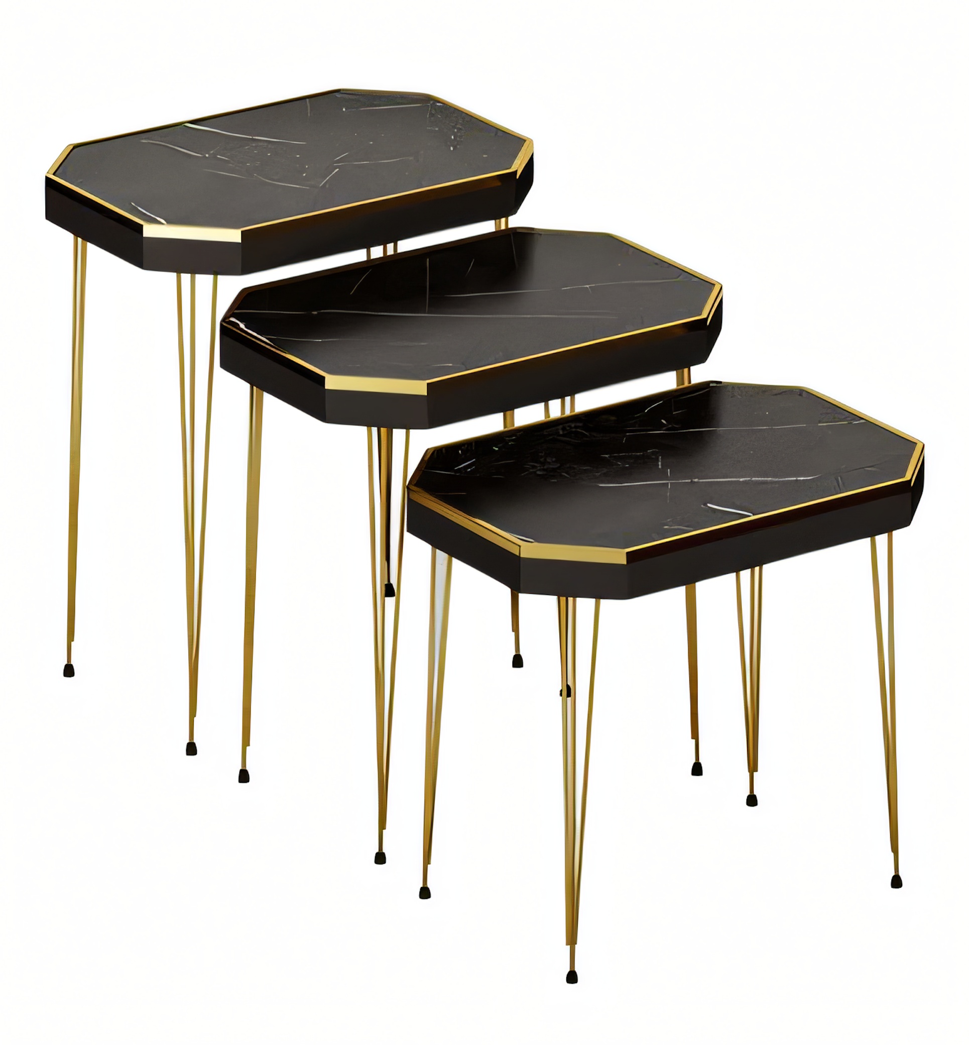 Die schwarzen Holz Beistelltische im modernen Design vereinen zeitlose Eleganz mit vielseitiger Funktionalität. Jedes Stück wird aus sorgfältig ausgewähltem Holz gefertigt, dessen tiefschwarze Oberfläche eine luxuriöse Ausstrahlung verleiht. Diese Tische sind nicht nur funktionale Begleiter, sondern auch stilvolle Akzente, die das Ambiente Ihres Zuhauses veredeln. Dank ihres minimalistischen Designs fügen sie sich harmonisch in jede Einrichtung ein und bieten gleichzeitig einen Hauch von Exklusivität. Ihre durchdachte Form und hochwertige Verarbeitung spiegeln den hohen Anspruch wider, den unsere Marke seit über 20 Jahren verkörpert. Wählen Sie diese Beistelltische für ein Lebensgefühl, das Anspruch und Stil perfekt vereint.