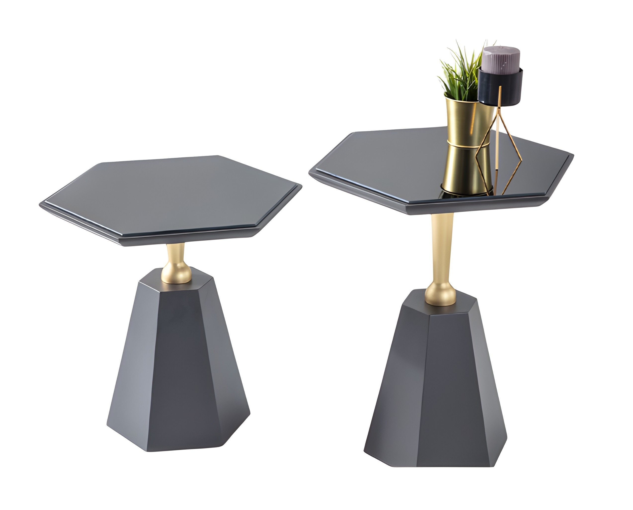 Sechseckige Beistelltische in Grau verbinden Ästhetik und Funktionalität
