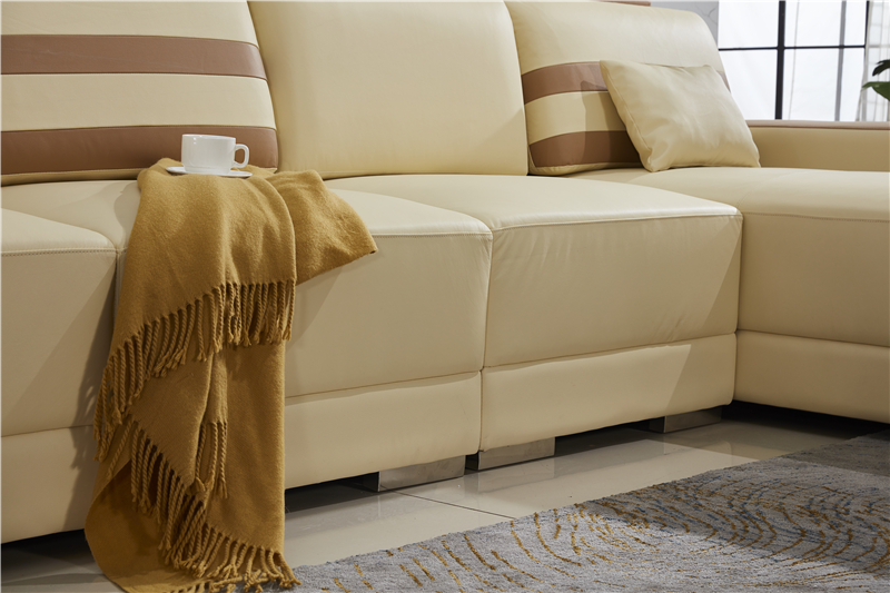 Ledersofa L-Form Couch Wohnlandschaft Ecksofa Garnitur Design Modern Sofa Beige