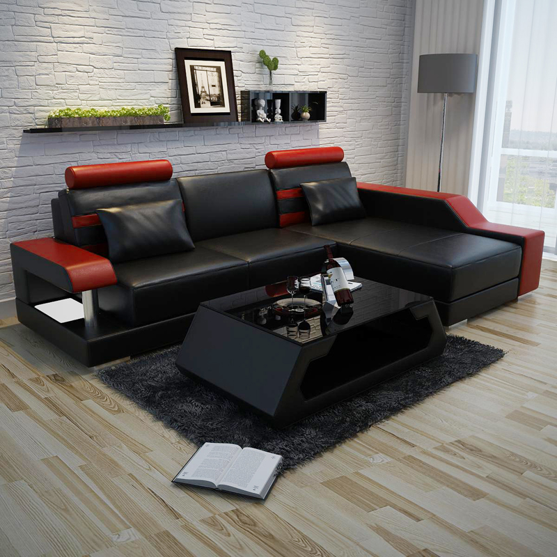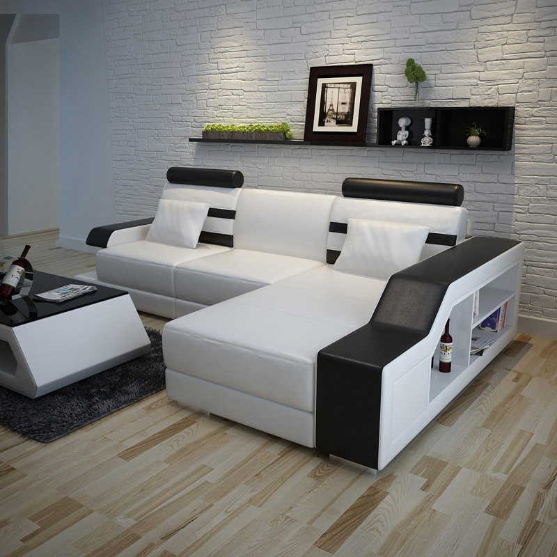 Ledersofa mit USB Wohnlandschaft Ecksofa Eck Garnitur Design Modern Sofa L6016E