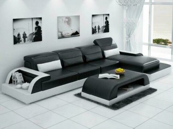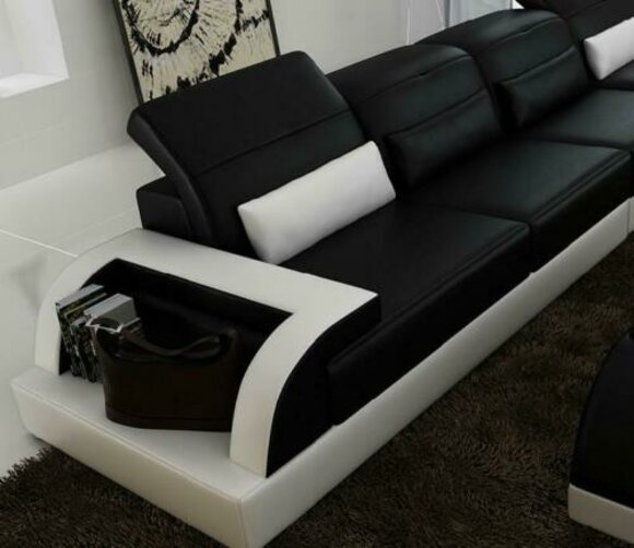 Wohnlandschaft Ecksofa Ledersofa Eck Couch Sofa mit Regal Polster Led