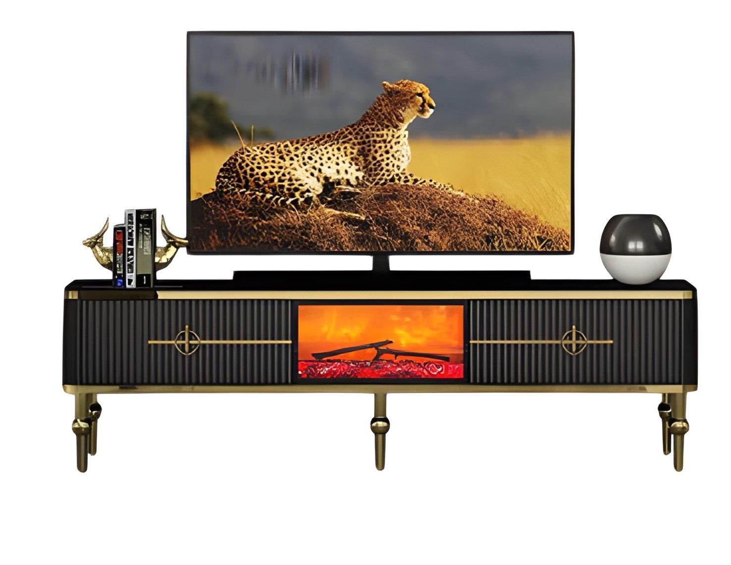 Der Wohnzimmerschrank TV Lowboard Sideboard Dekokamin vereint zeitloses Design mit modernem Luxus. In elegantem Schwarz gefertigt, strahlt dieses exquisite Möbelstück eine unaufdringliche Raffinesse aus, die jeden Wohnraum bereichert. Die klaren Linien und die minimalistische Ästhetik schaffen eine harmonische Atmosphäre und setzen Ihre Mediengeräte gekonnt in Szene. Die hochwertigen Materialien garantieren nicht nur Langlebigkeit, sondern auch ein erstklassiges Finish, das den Ansprüchen exklusiver Lebensstile gerecht wird. Ob für entspannte Abende oder gesellige Zusammenkünfte – dieses Lowboard ist die perfekte Wahl für anspruchsvolle Individualisten, die Wert auf Stil und Qualität legen. Erleben Sie mit diesem Meisterwerk der Möbelkunst eine neue Dimension der Wohnkultur.