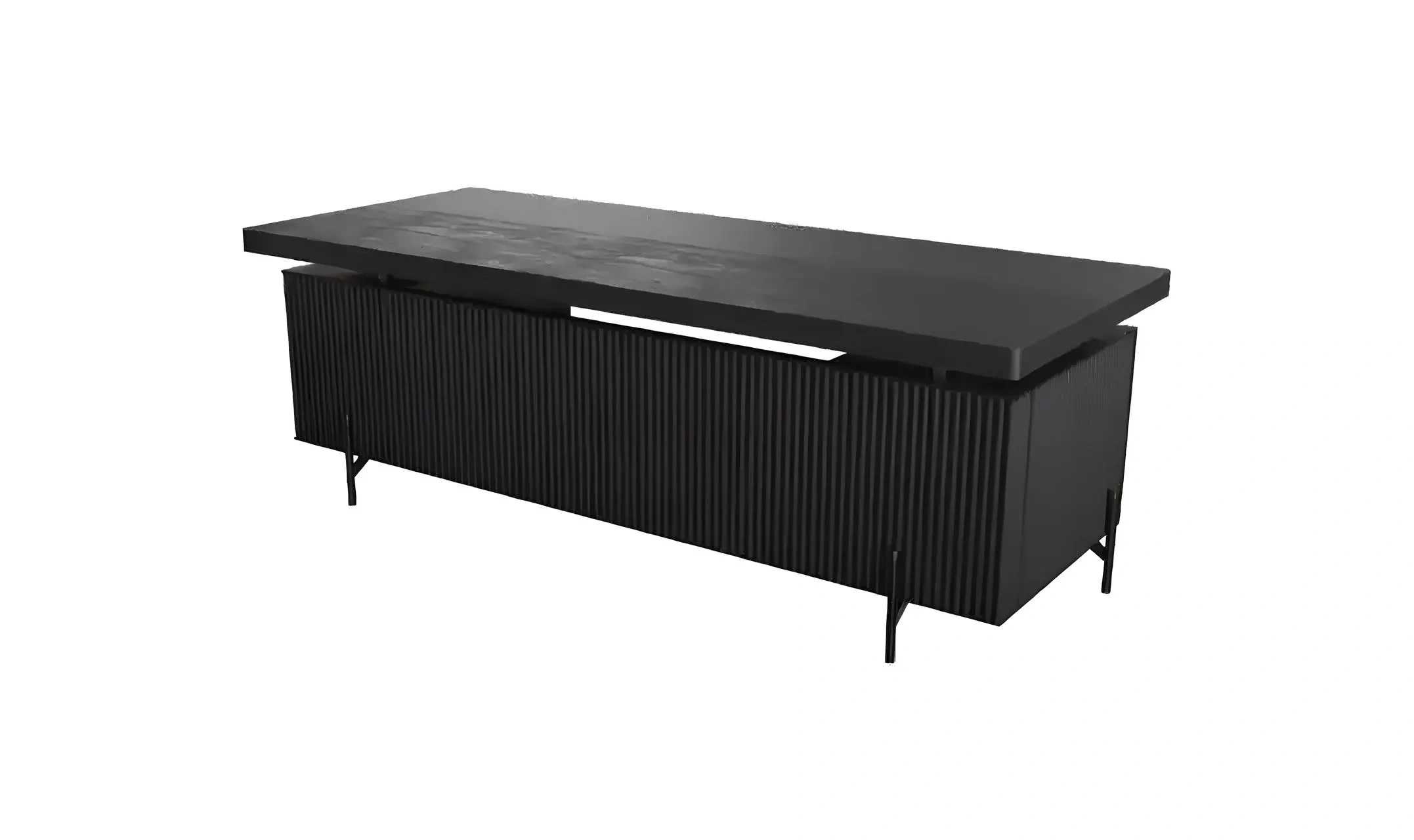Der Schreibtisch Arbeitstisch vereint zeitlose Eleganz und funktionale Exzellenz in einem Meisterwerk aus massivem Holz. Mit seiner markanten schwarzen Oberfläche strahlt er eine raffinierte Aura aus, die jedes Büro in einen Ort der Inspiration verwandelt. Jedes Detail ist präzise gestaltet, um sowohl ästhetische Ansprüche als auch praktische Bedürfnisse zu erfüllen. Die großzügigen Abmessungen bieten ausreichend Platz für kreative Entfaltung und effizientes Arbeiten, während die robuste Konstruktion Langlebigkeit garantiert. Dieses Designerstück ist nicht nur ein Möbelstück, sondern ein Statement für anspruchsvolle Lebensstile. Perfekt für die, die das Besondere schätzen und eine exklusive Atmosphäre schaffen möchten.