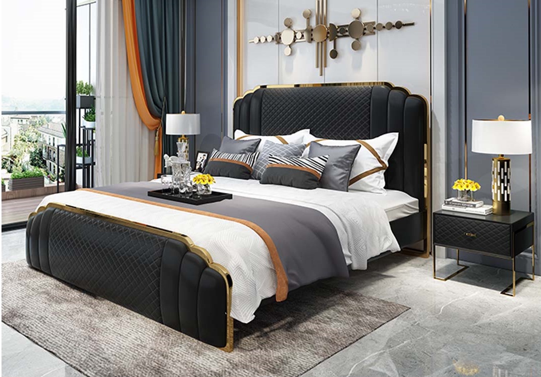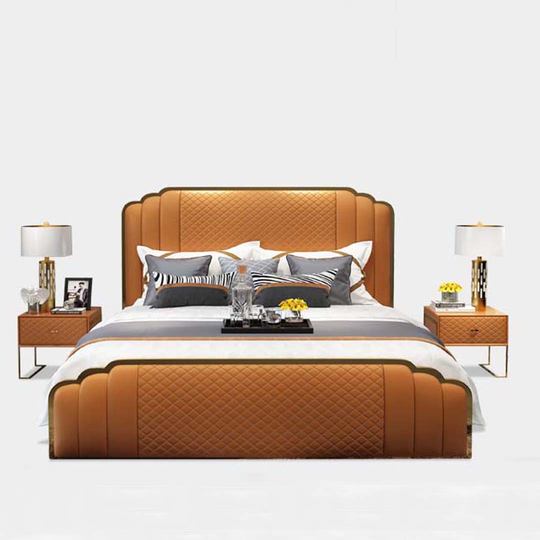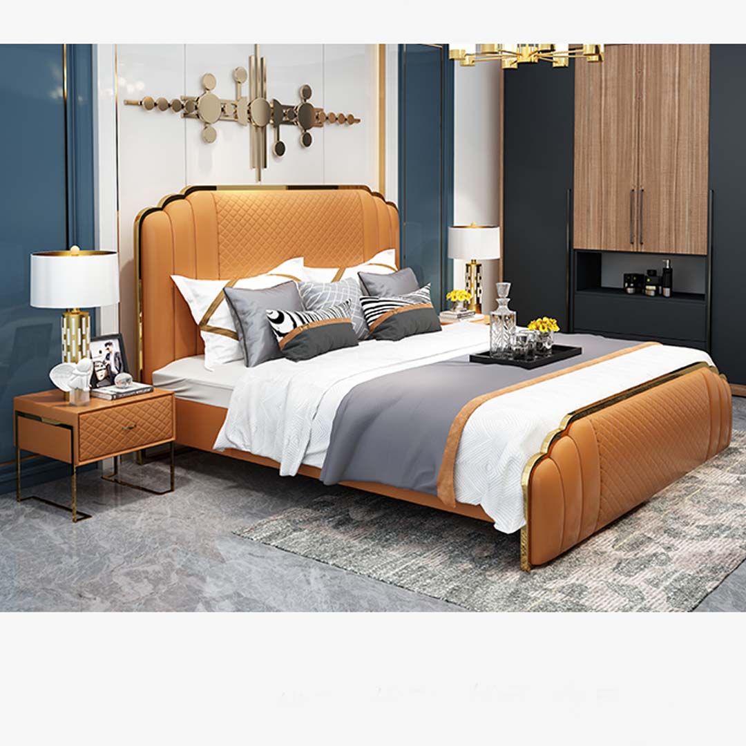 Design Lederbett Schlafzimmer 3tlg. Set 2x Nachttisch Betten Luxus Möbel