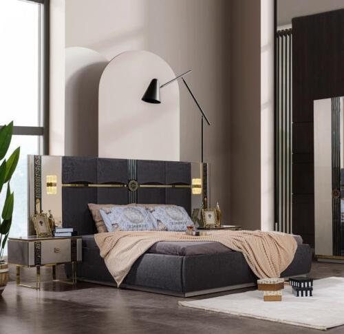 Doppelbett Komplette Schlafzimmermöbel Bett Nachttische Grau 3tlg