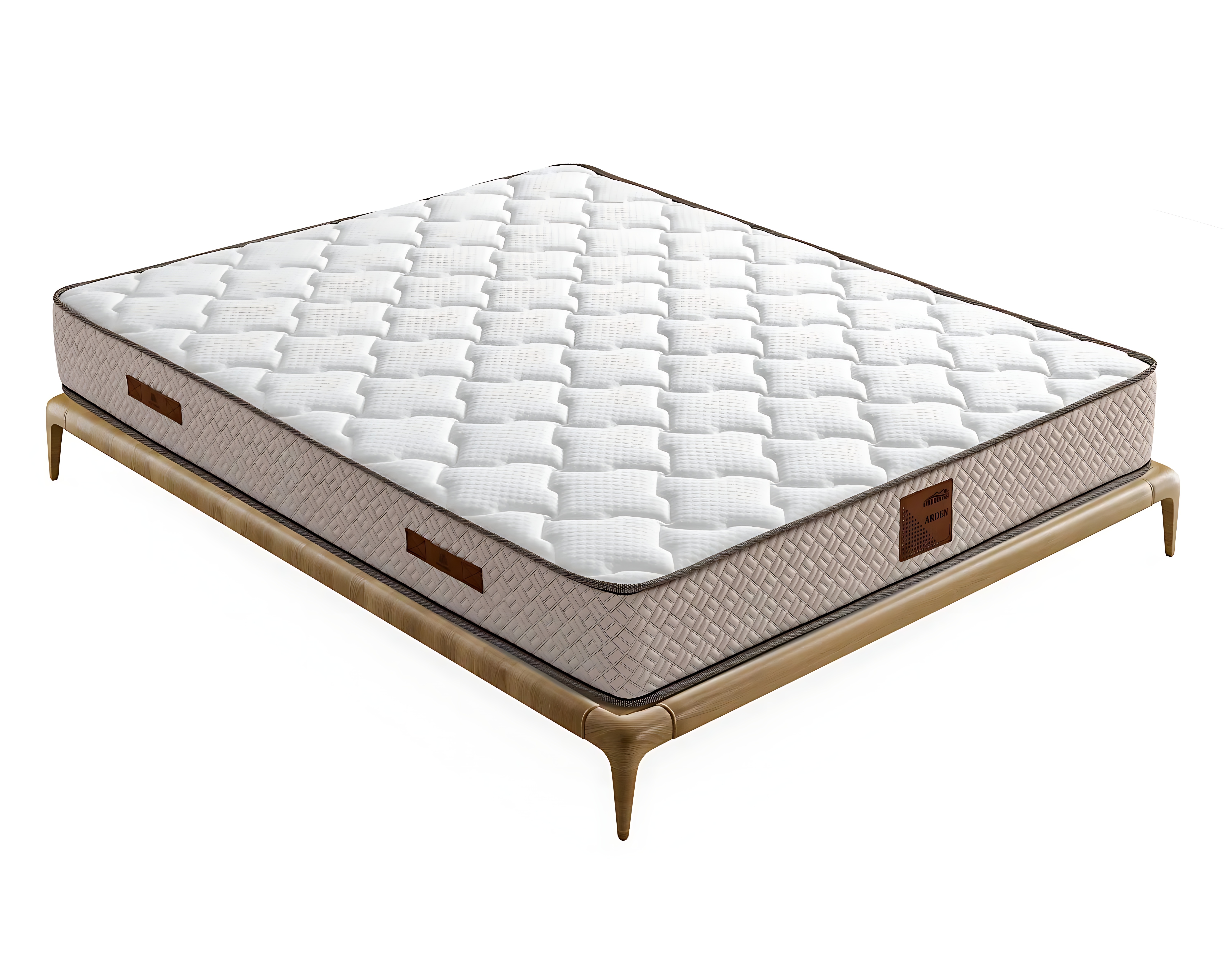 Elegantes Bett mit Matratze in Beige aus Textil und Holz