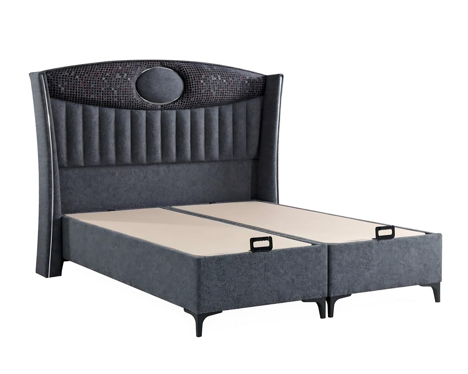 Elegantes graues Bett mit Matratze aus Textil und Holz