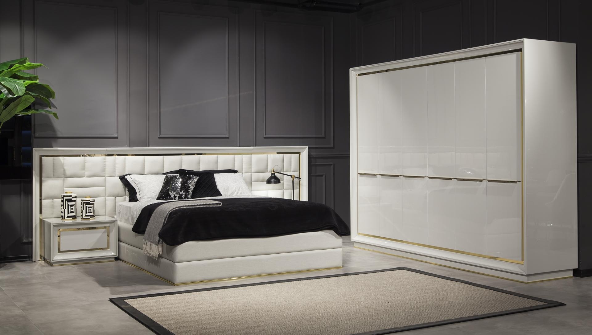 Schlafzimmer Möbel Bett Nachttische Weiß Gold Betten Komplett 4tlg | xlmoebel.de