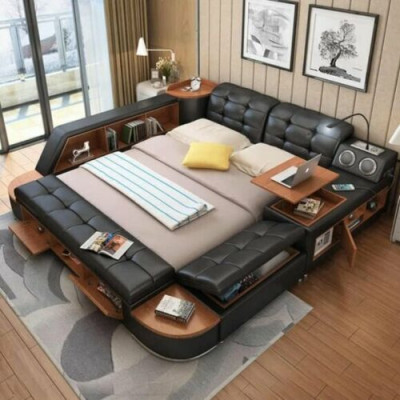 Doppelbett, Lederbett, Möbel, Multifunktionsbett