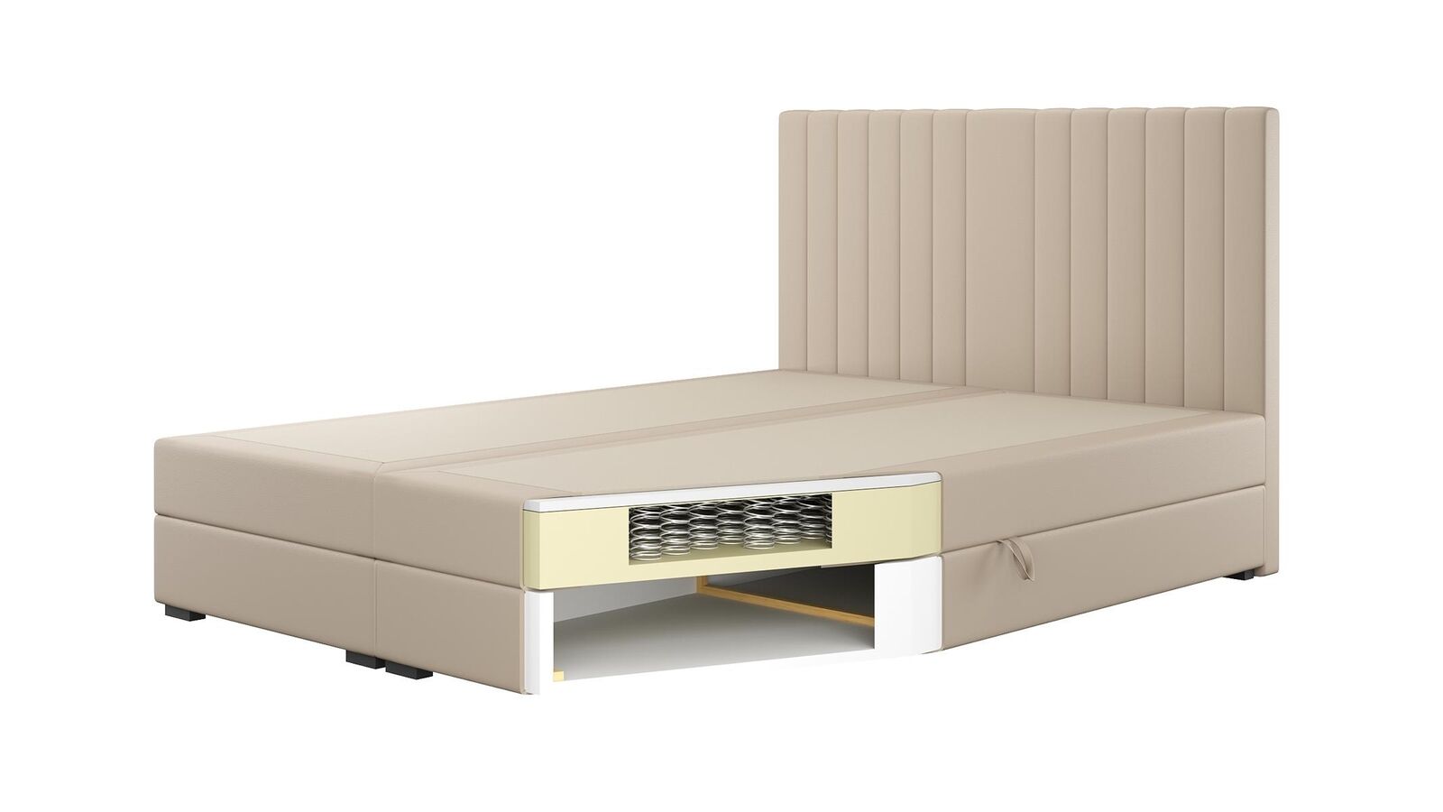 Comfortable and functional bed is made of high quality material in a modern style