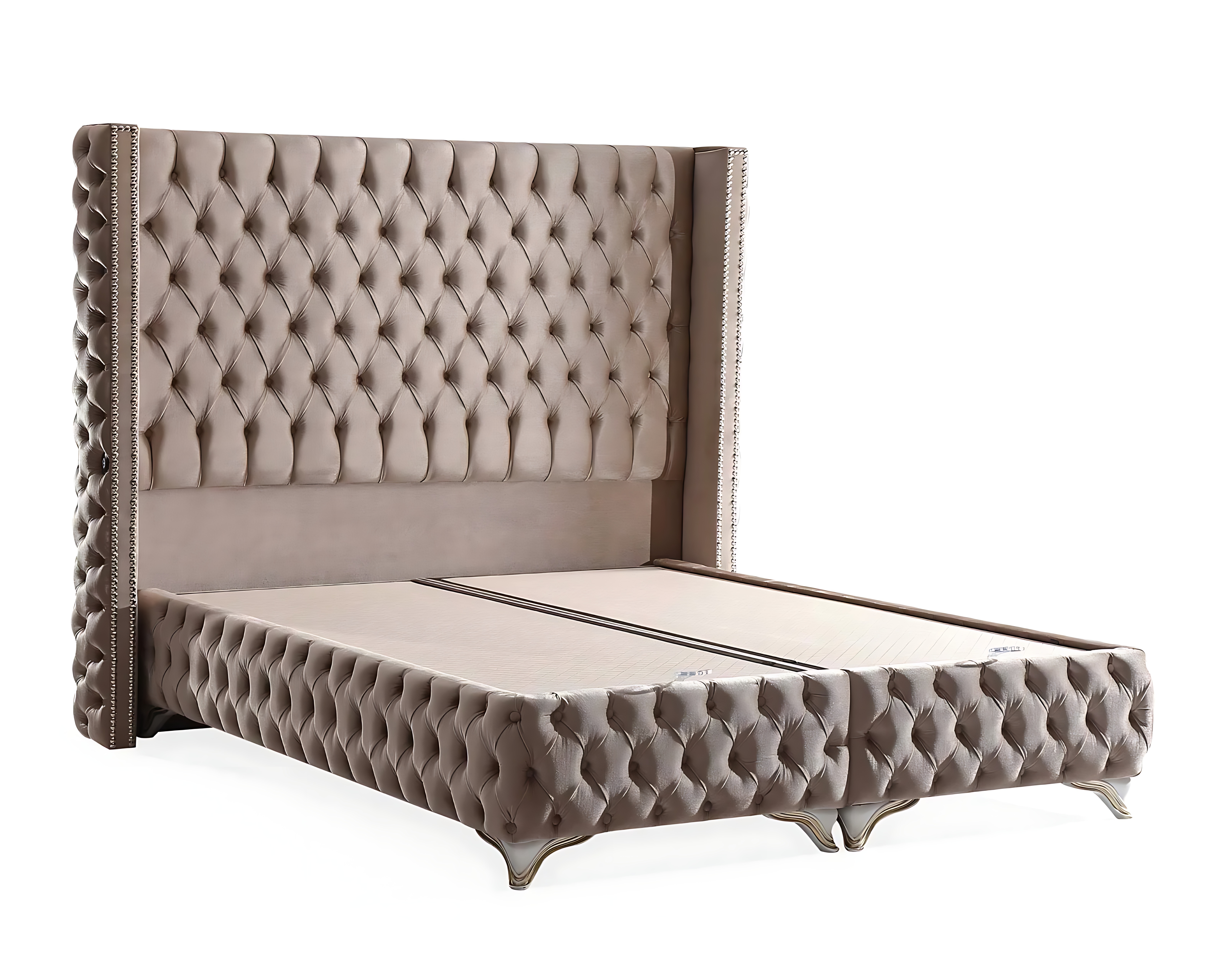 Elegantes Bett mit Matratze aus Textil in Beige