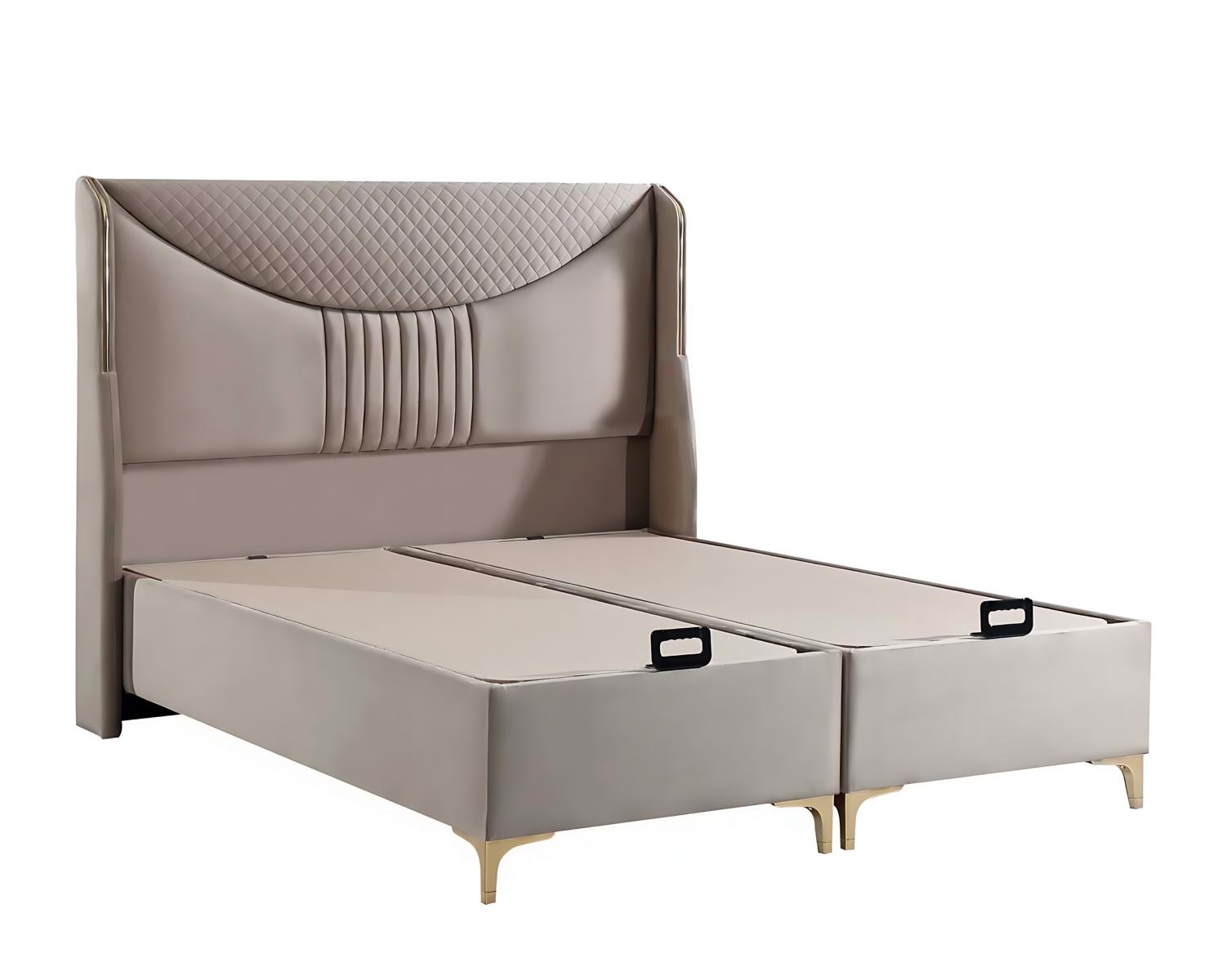 Das Bett mit Matratze im modernen Stil verkörpert zeitlose Eleganz und außergewöhnlichen Komfort. Gefertigt aus hochwertigem beige Holz, fügt es sich harmonisch in jede Schlafzimmergestaltung ein und schafft eine Atmosphäre von Raffinesse und Stil. Die sorgfältige Handwerkskunst garantiert nicht nur Langlebigkeit, sondern auch ein unvergleichliches Schlaferlebnis. Die luxuriöse Matratze unterstützt eine optimale Körperhaltung und verspricht erholsame Nächte. Dieses Bett ist mehr als nur ein Möbelstück; es ist ein Statement für einen exklusiven Lebensstil und spiegelt das Engagement der Marke für 20 Jahre herausragende Qualität wider. Verleihen Sie Ihrem Raum einen Hauch von Luxus und genießen Sie die perfekte Symbiose aus Design und Funktionalität.